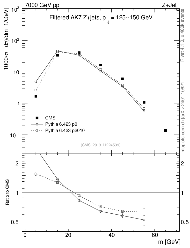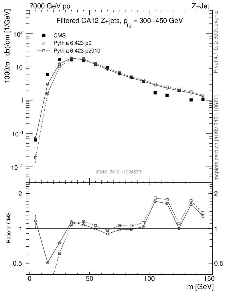 Z+Jet : Jet mass : Filtered jet mass