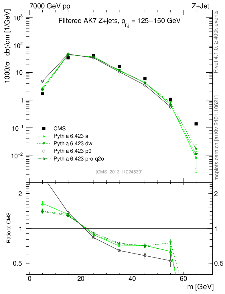 Z+Jet : Jet mass : Filtered jet mass