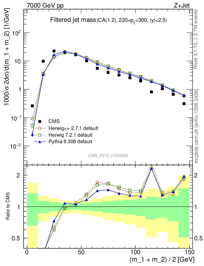 Z+Jet : Jet mass : Filtered jet mass