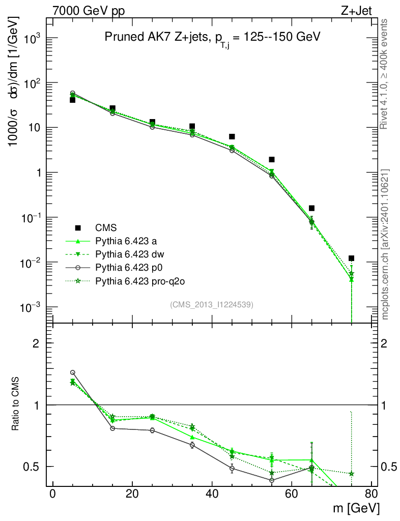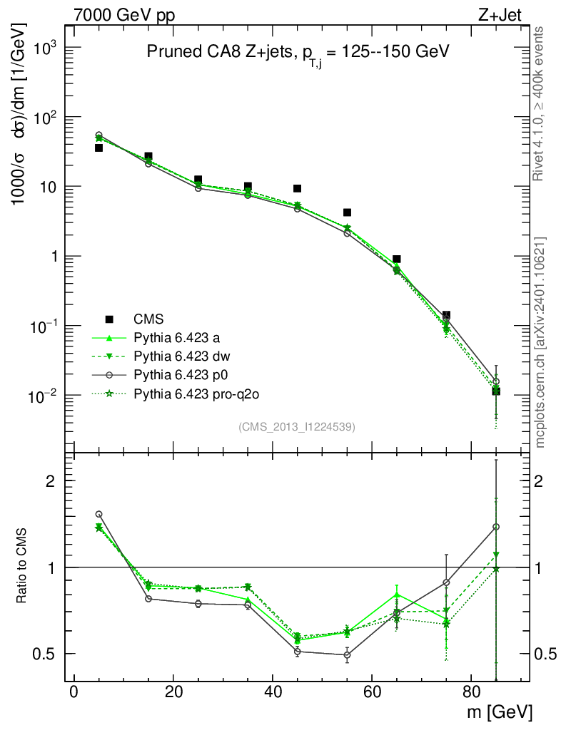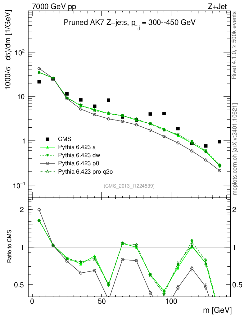 Z+Jet : Jet mass : Pruned jet mass