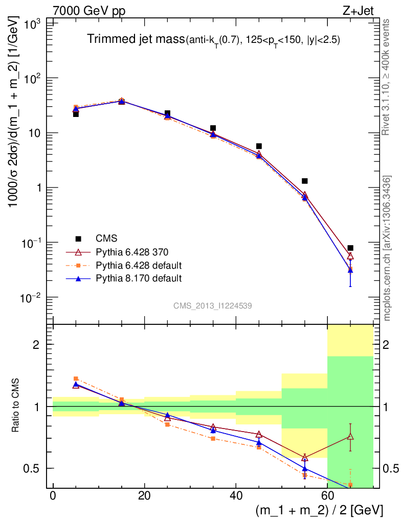 Z+Jet : Jet mass : Trimmed jet mass