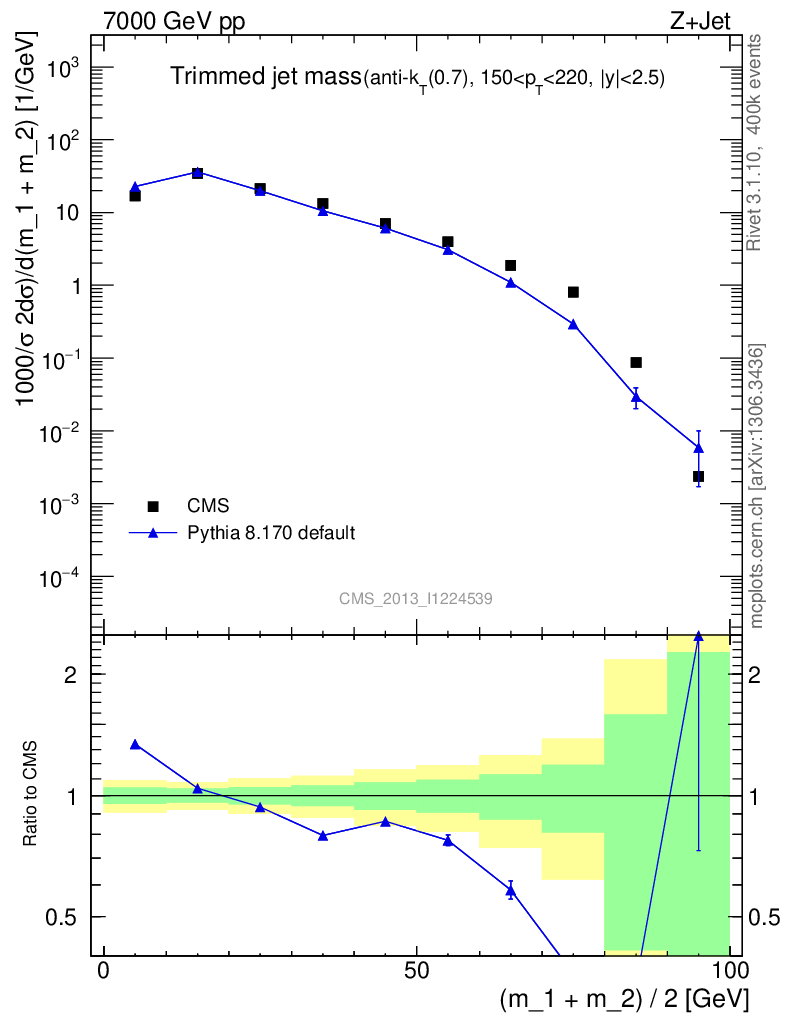 Z+Jet : Jet mass : Trimmed jet mass