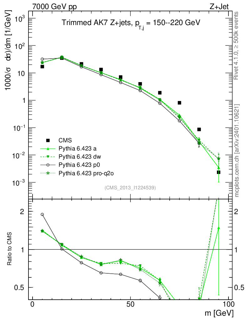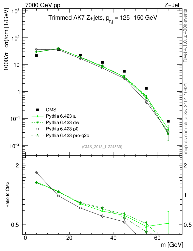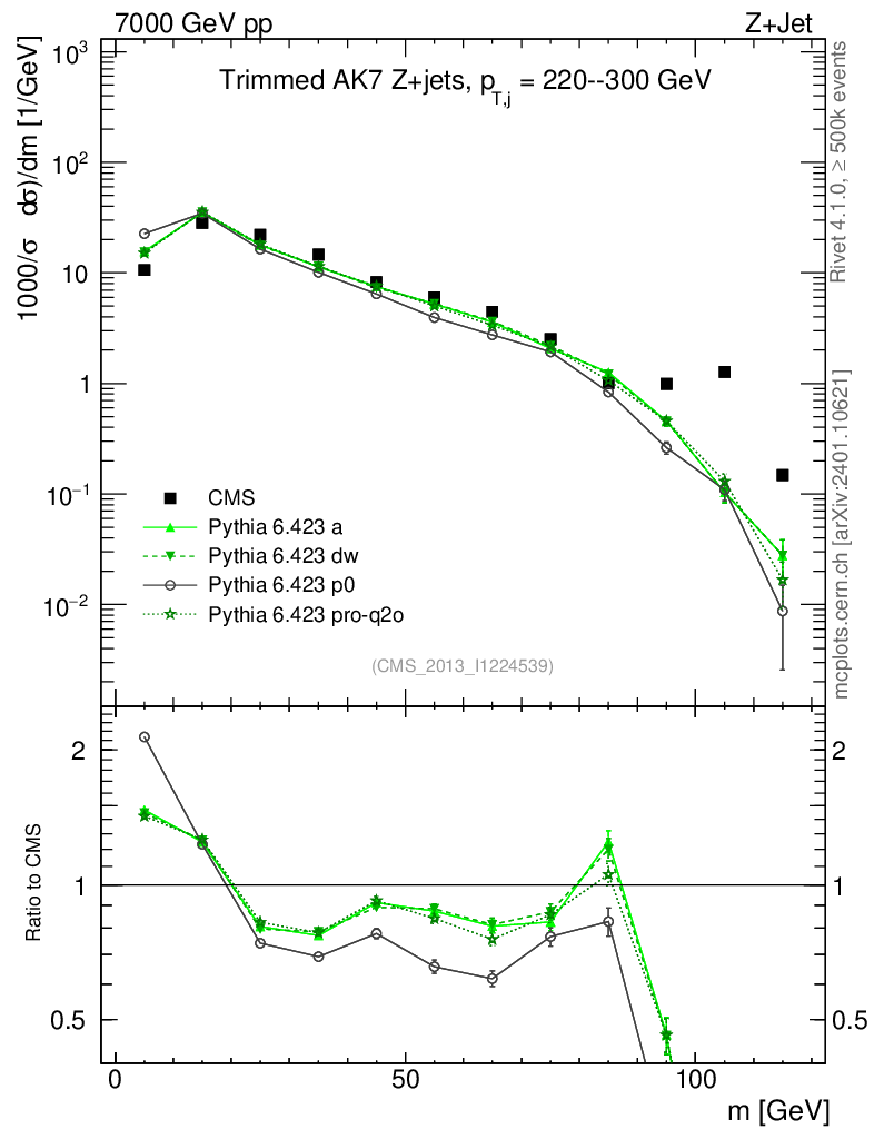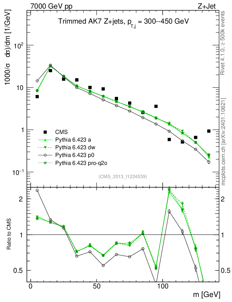 Z+Jet : Jet mass : Trimmed jet mass