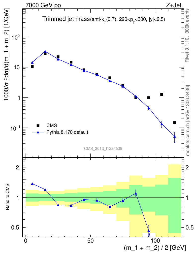 Z+Jet : Jet mass : Trimmed jet mass