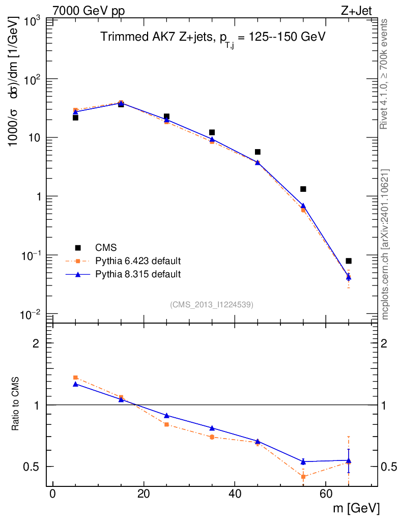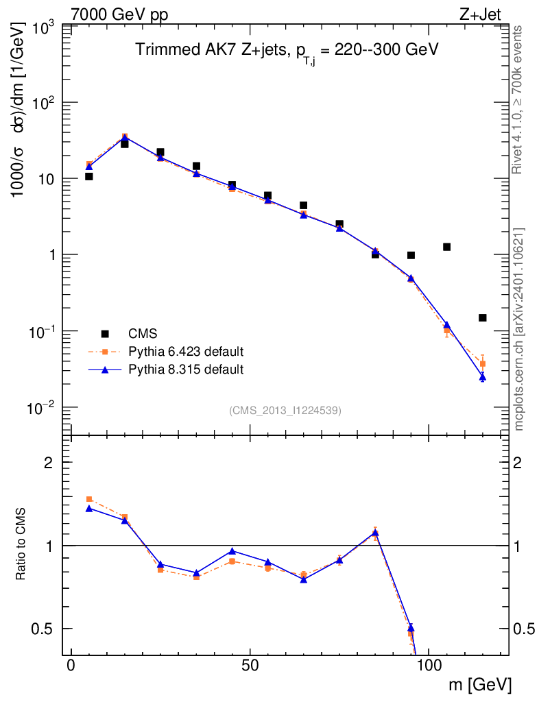 Z+Jet : Jet mass : Trimmed jet mass