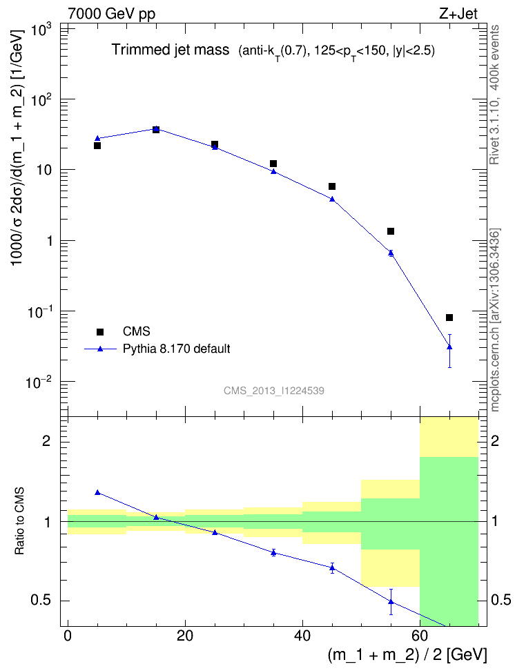 Z+Jet : Jet mass : Trimmed jet mass
