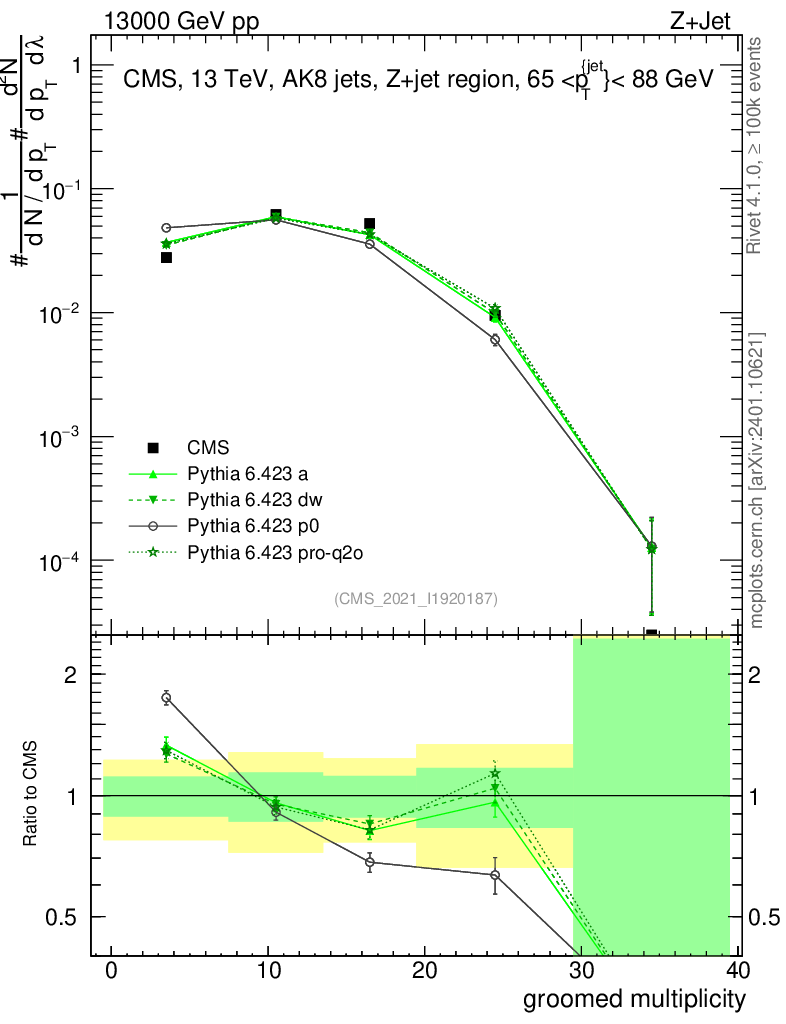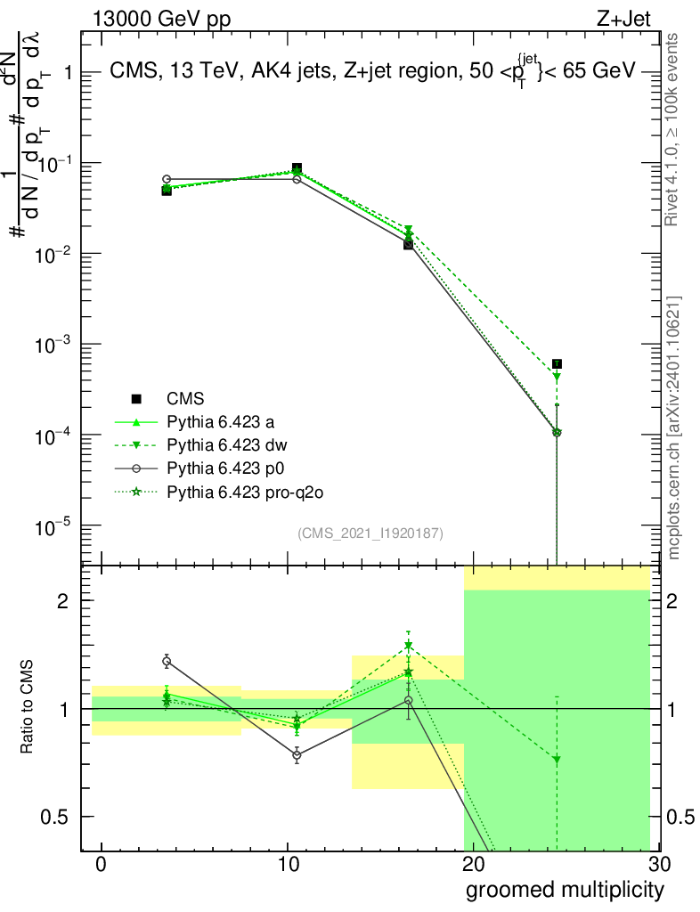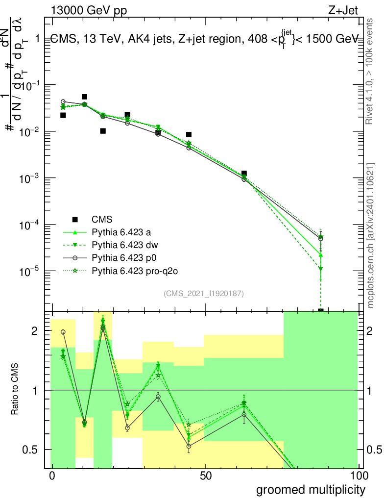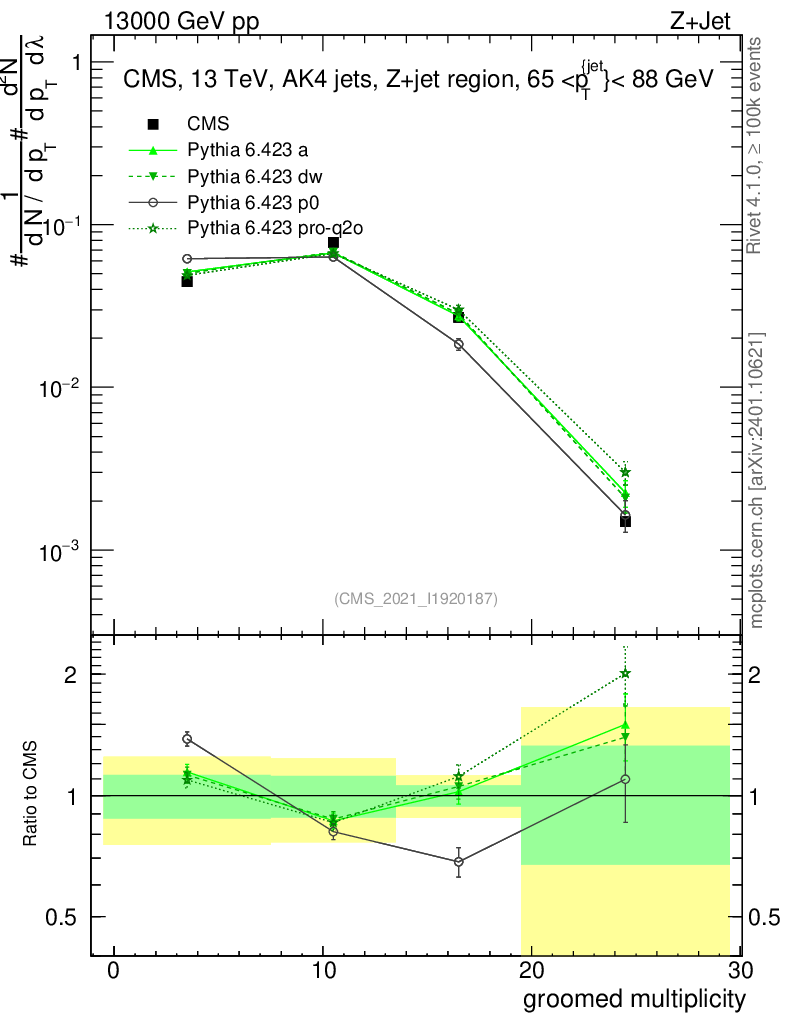 Z+Jet : Generalized angularities : Groomed multiplicity λ