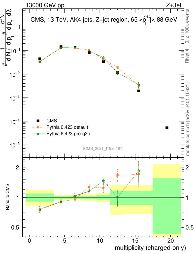 Z+Jet : Generalized angularities : Multiplicity λ