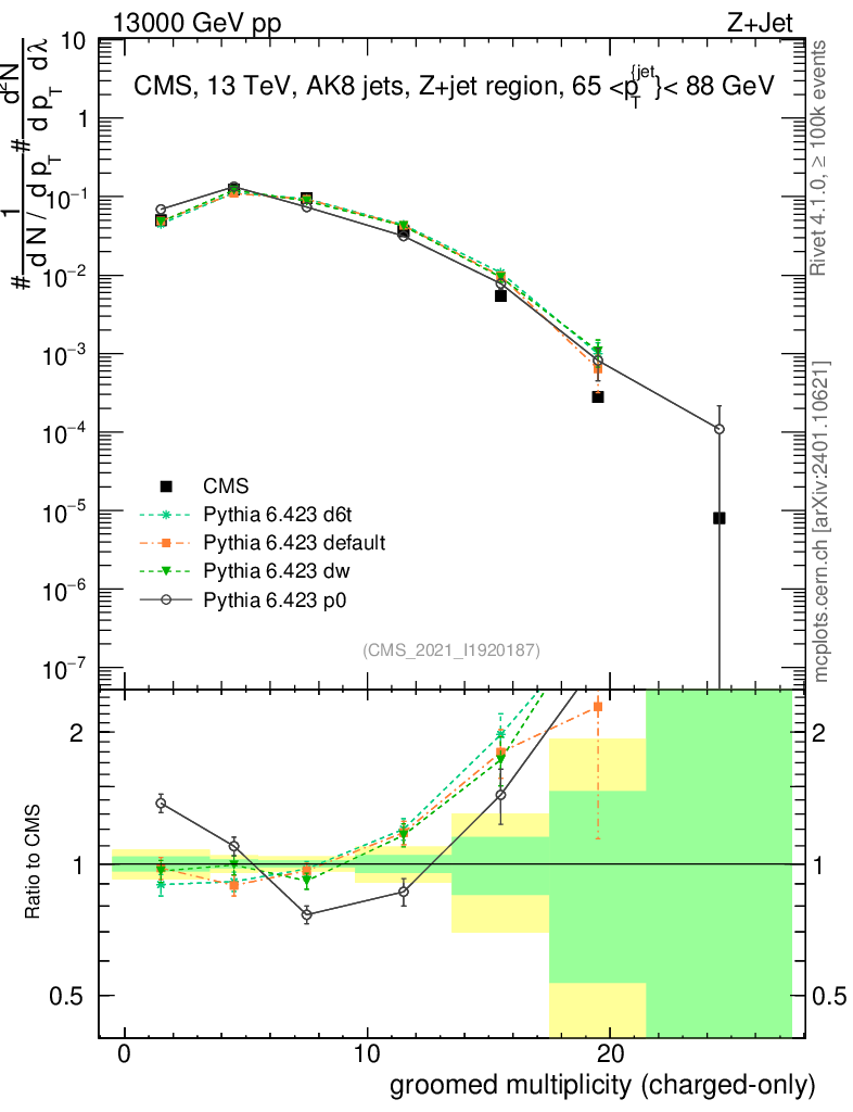 Z+Jet : Generalized angularities : Groomed multiplicity λ