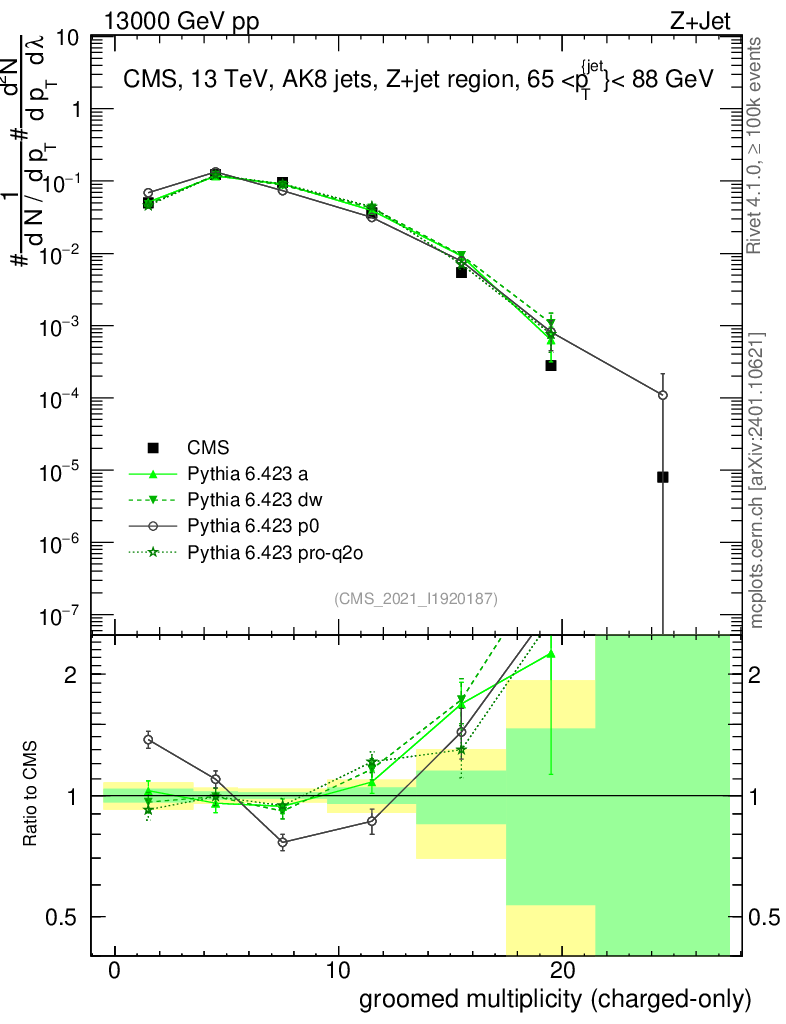 Z+Jet : Generalized angularities : Groomed multiplicity λ
