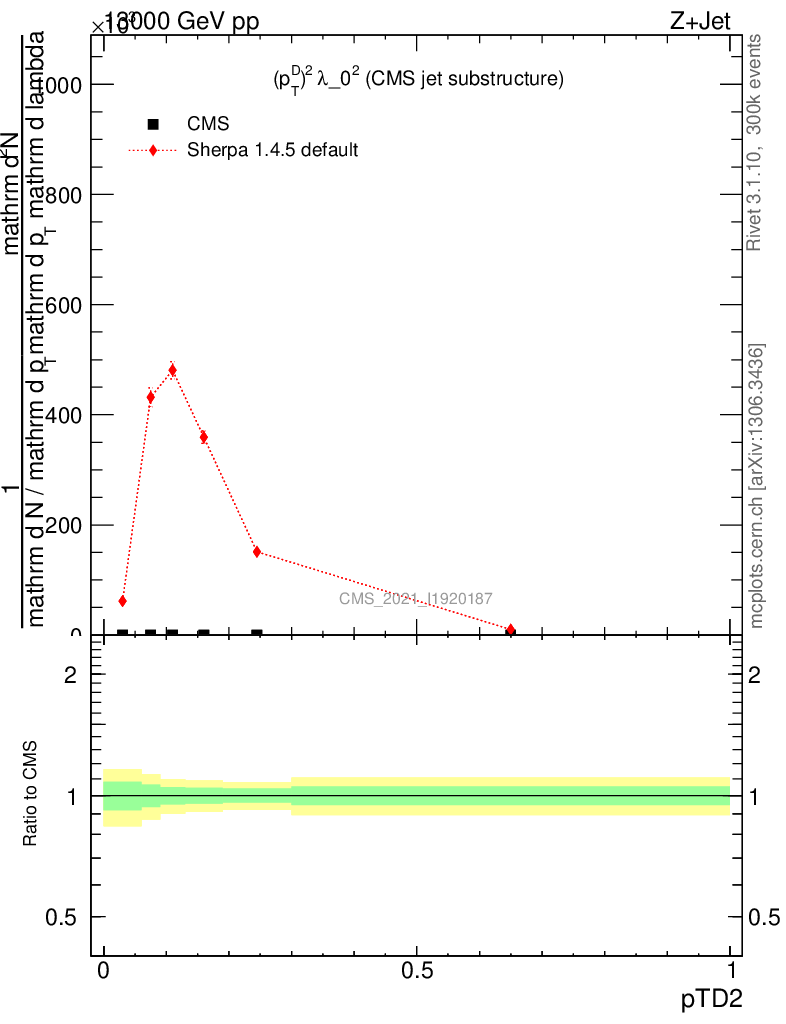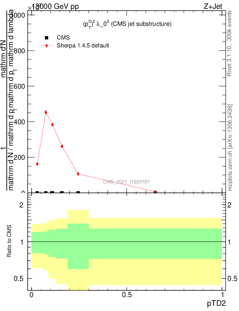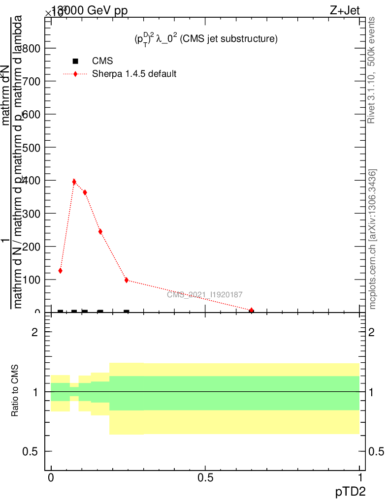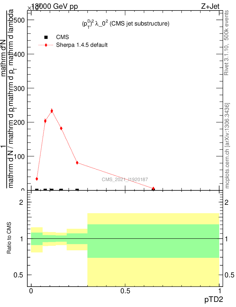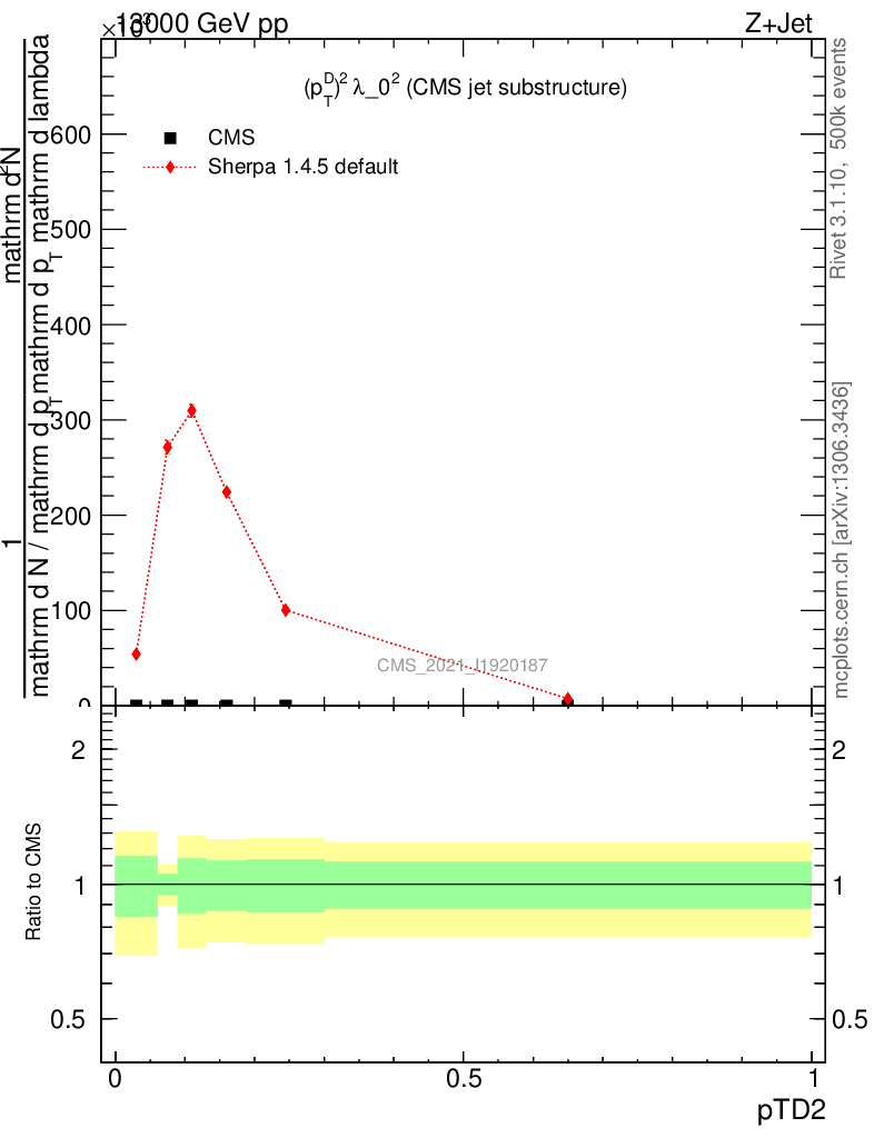 Plot of j.ptd2 in 13000 GeV pp collisions