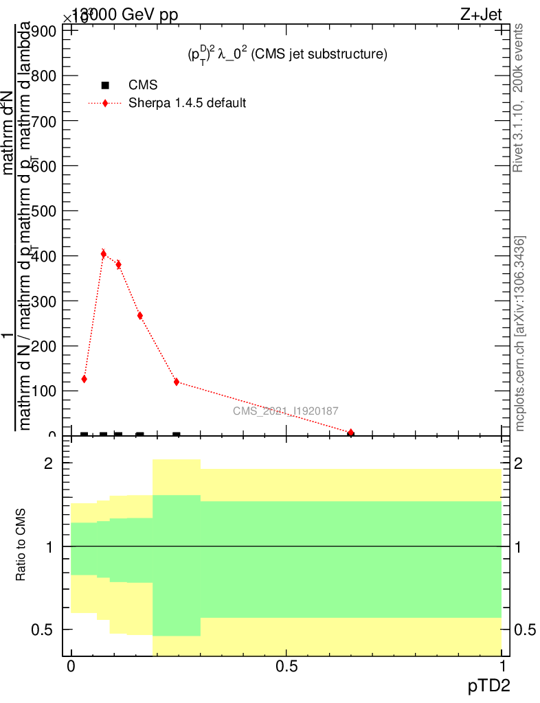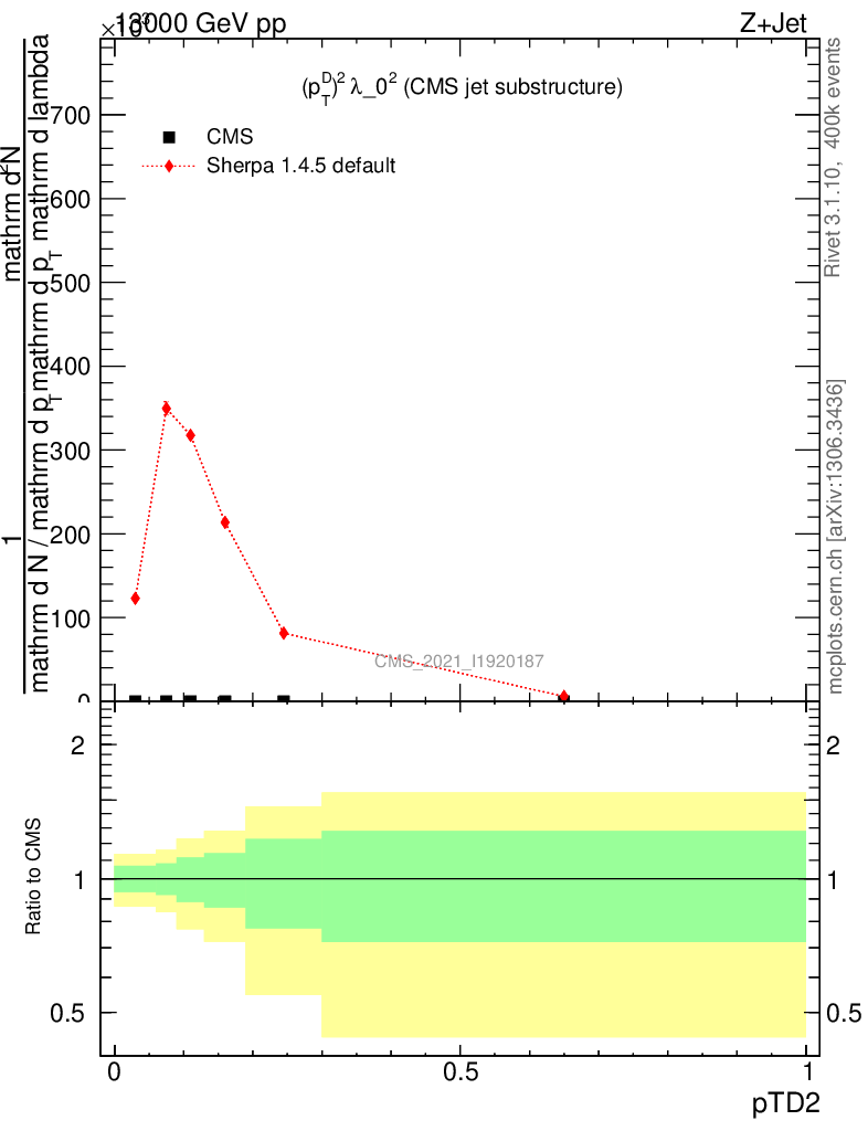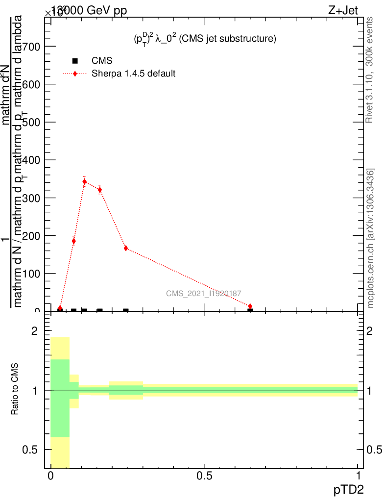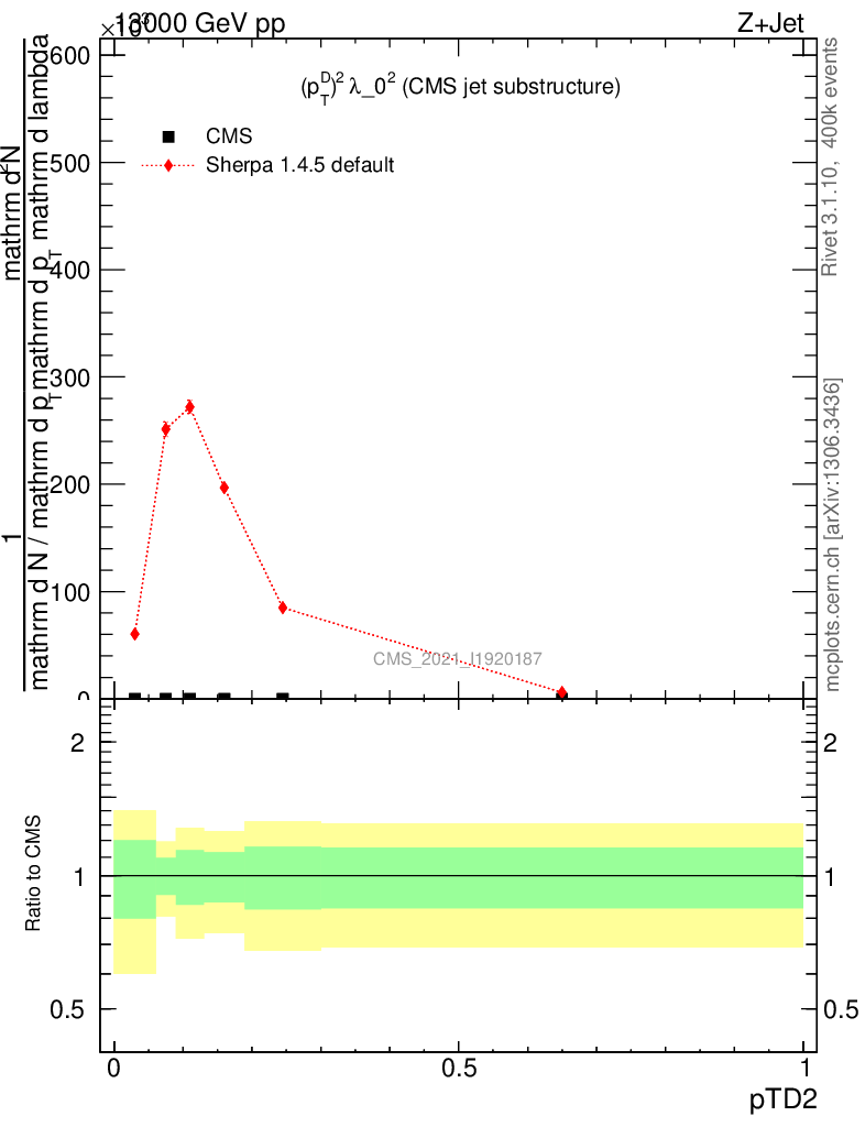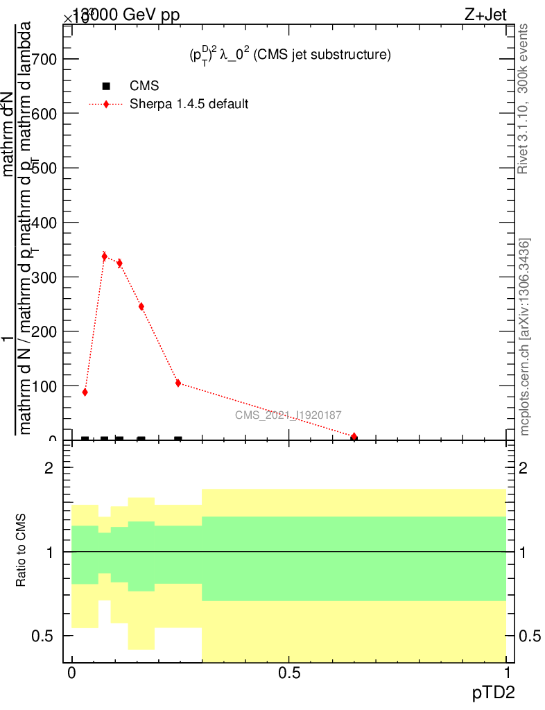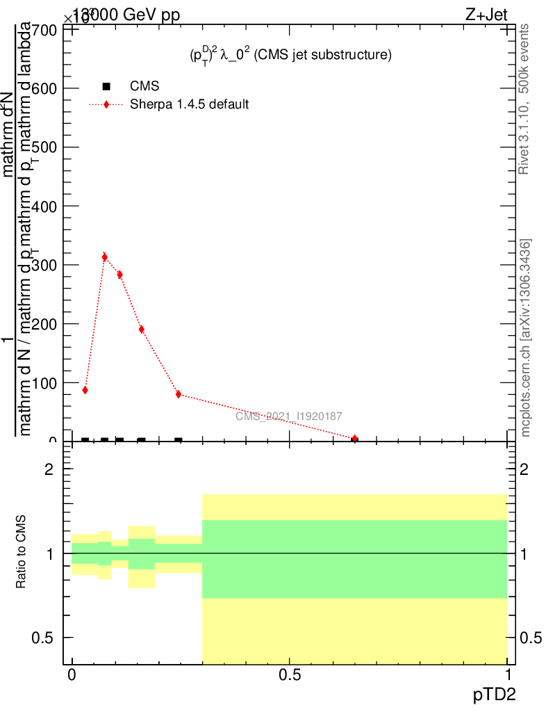 Plot of j.ptd2 in 13000 GeV pp collisions
