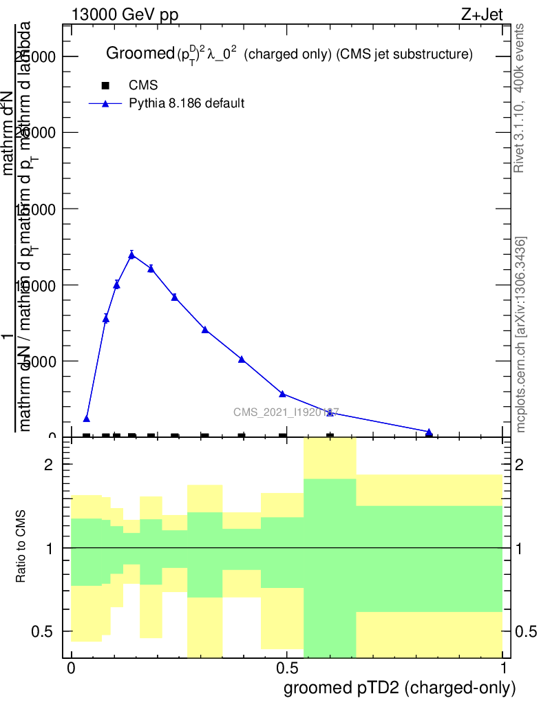 Z+Jet : Generalized angularities : Groomed (pDT)2 λ20 (charged only)