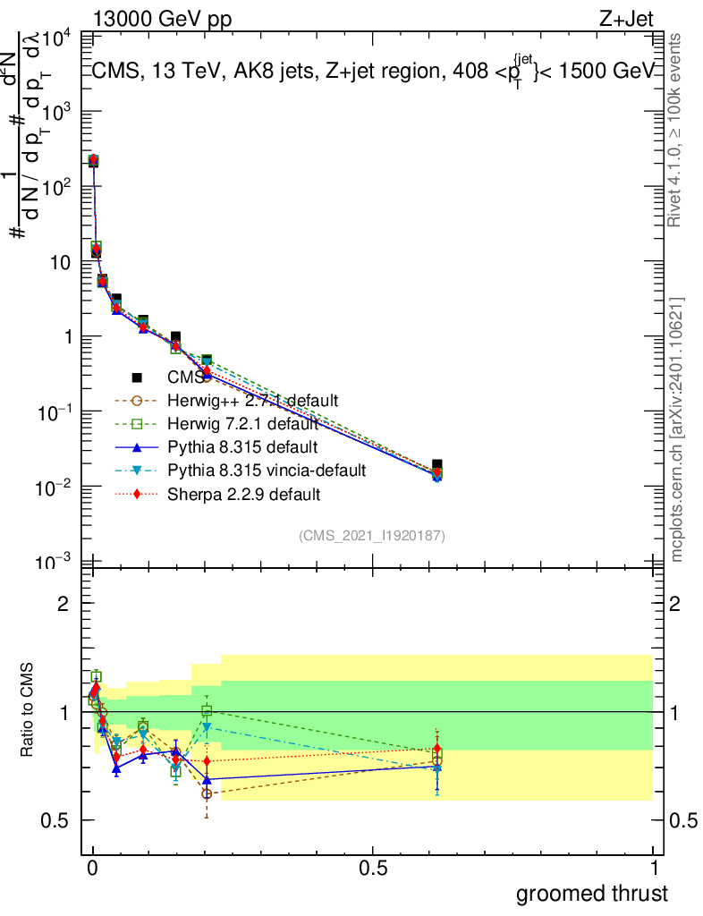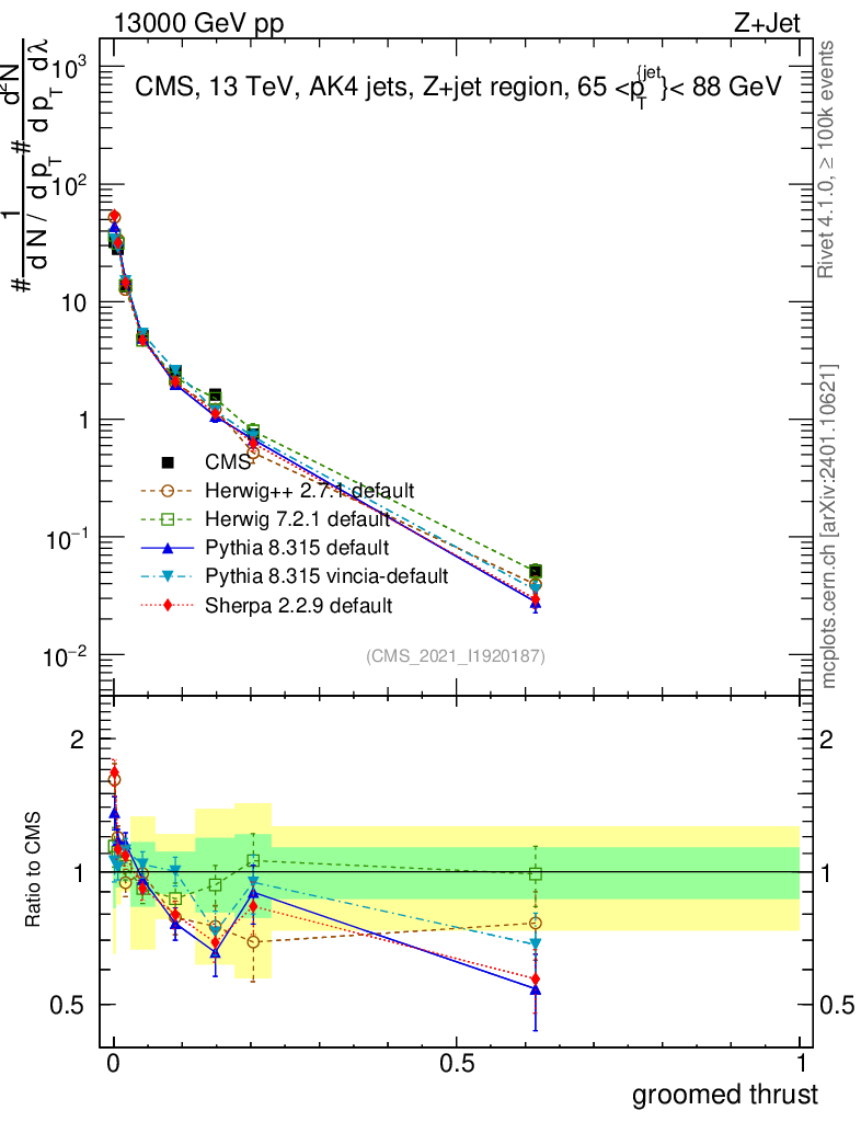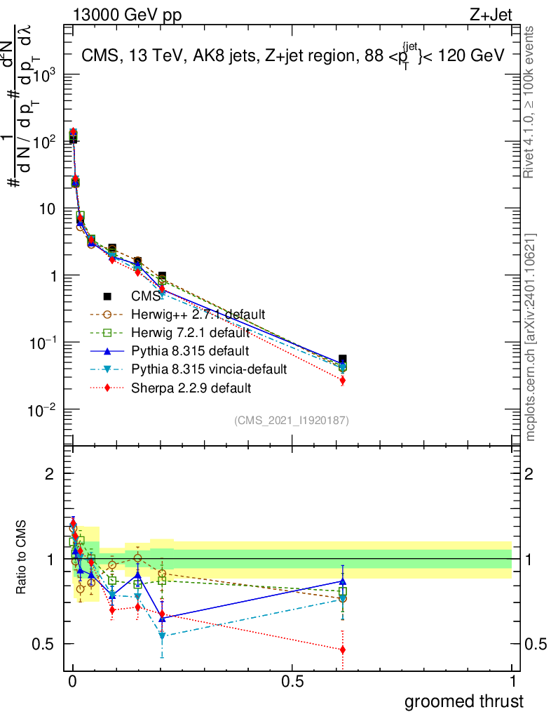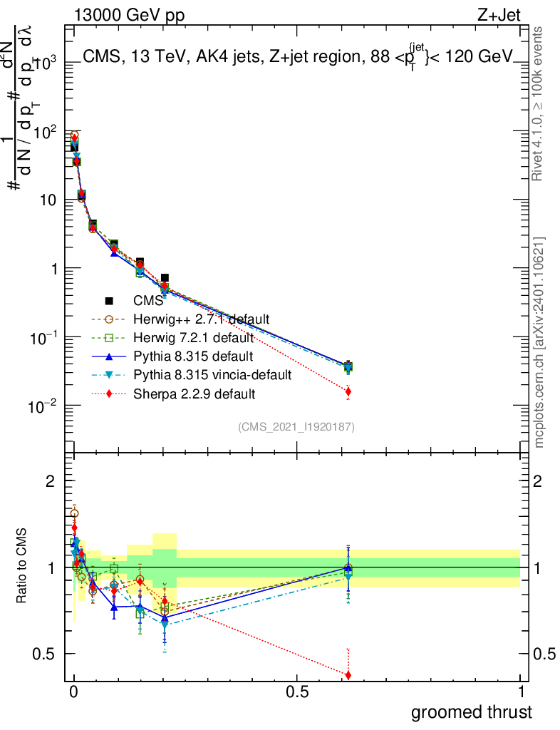 Z+Jet : Generalized angularities : Groomed thrust λ