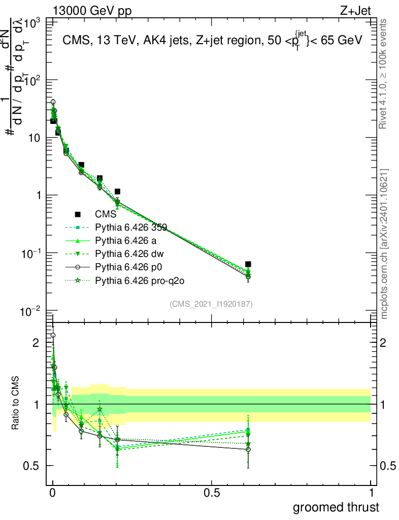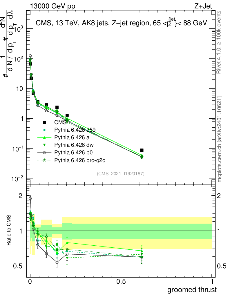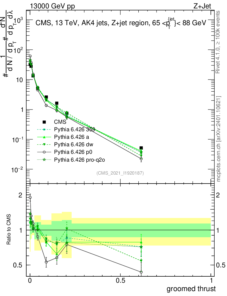 Z+Jet : Generalized angularities : Groomed thrust λ