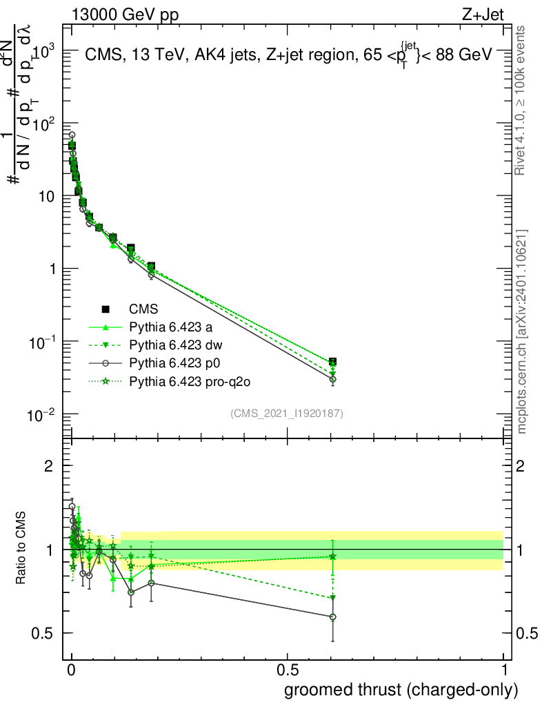 Z+Jet : Generalized angularities : Groomed thrust λ