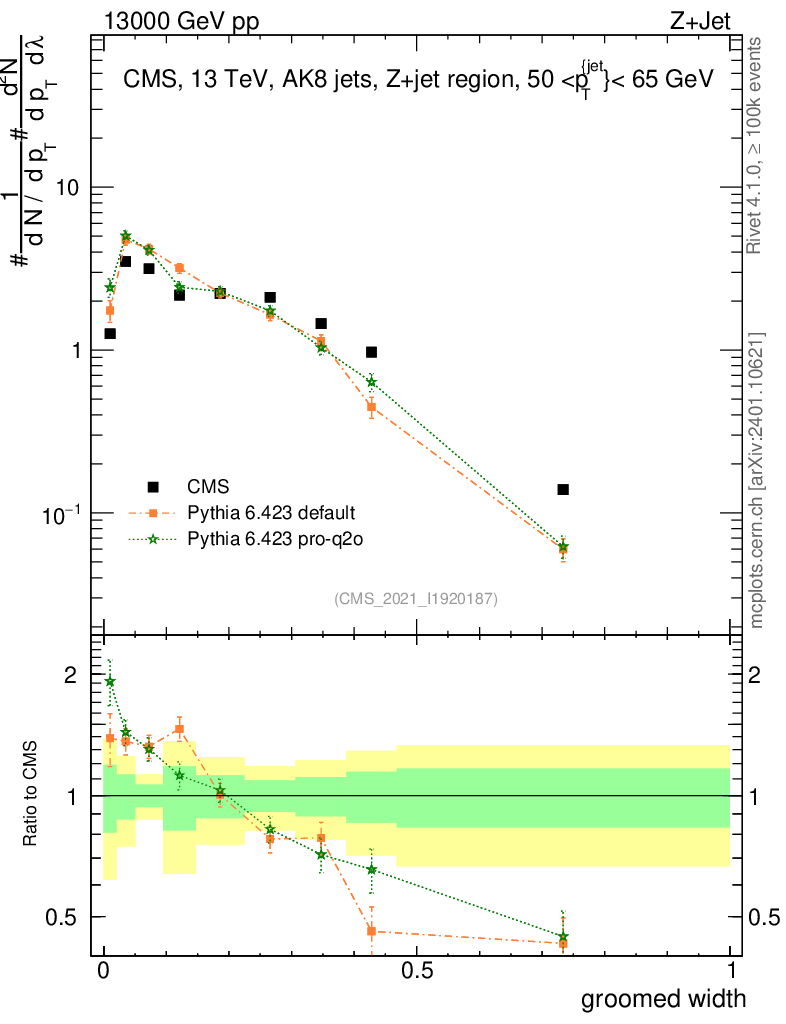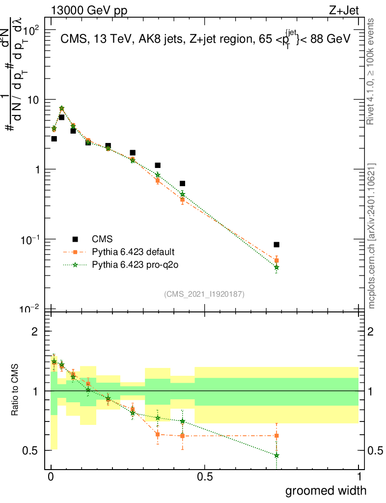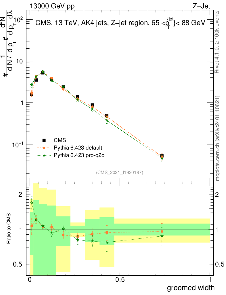 Z+Jet : Generalized angularities : Groomed width λ