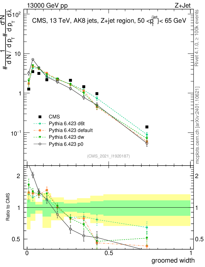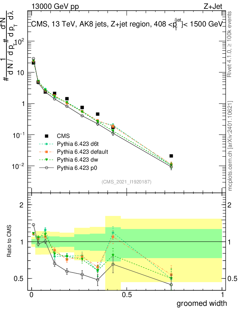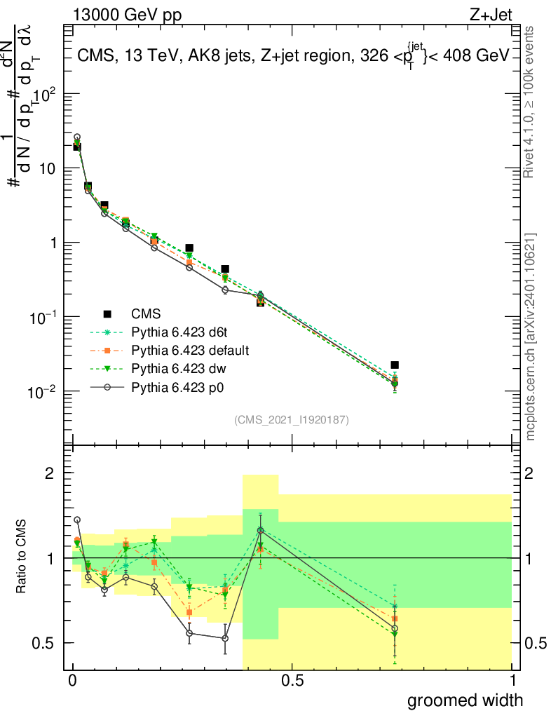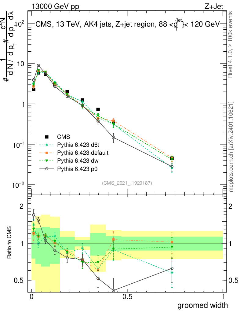 Z+Jet : Generalized angularities : Groomed width λ