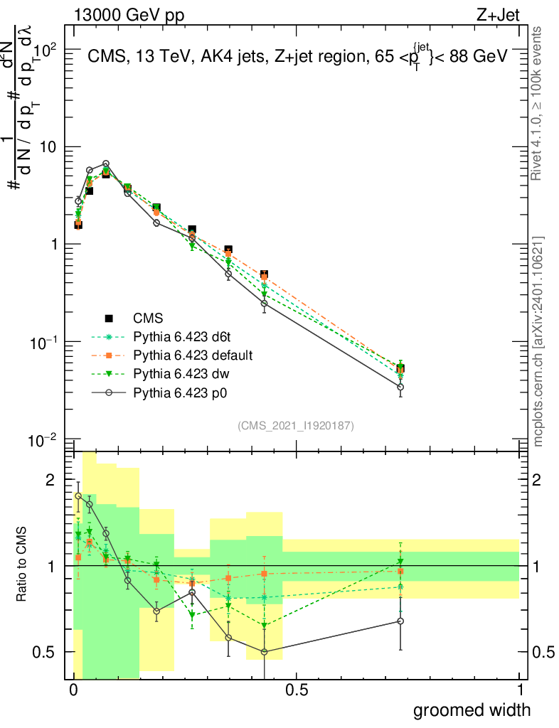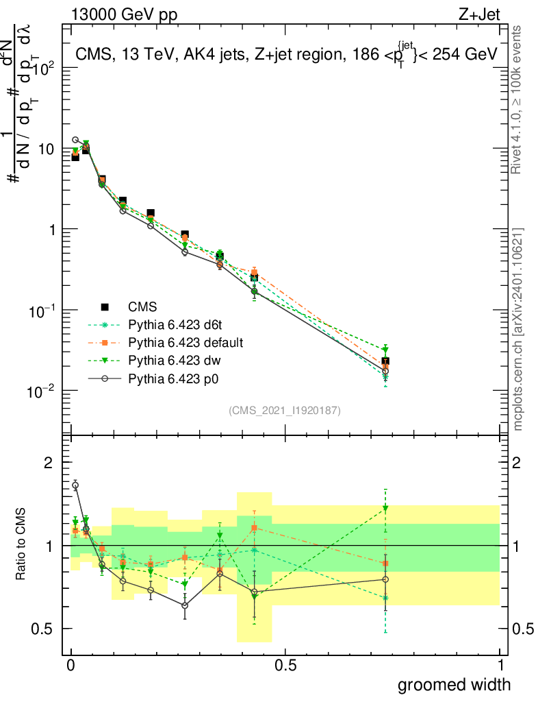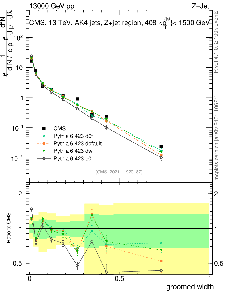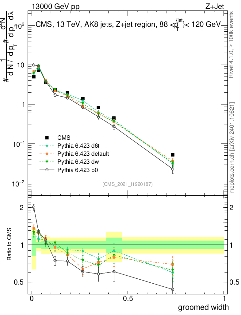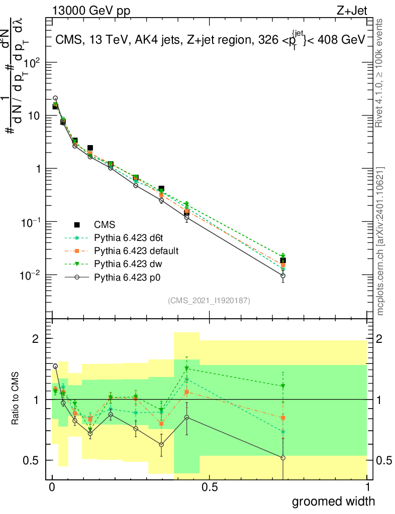 Z+Jet : Generalized angularities : Groomed width λ