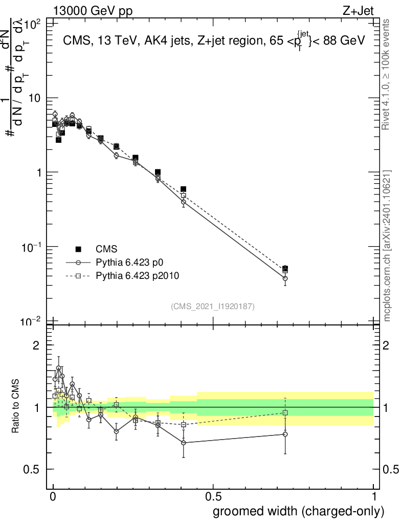 Z+Jet : Generalized angularities : Groomed width λ