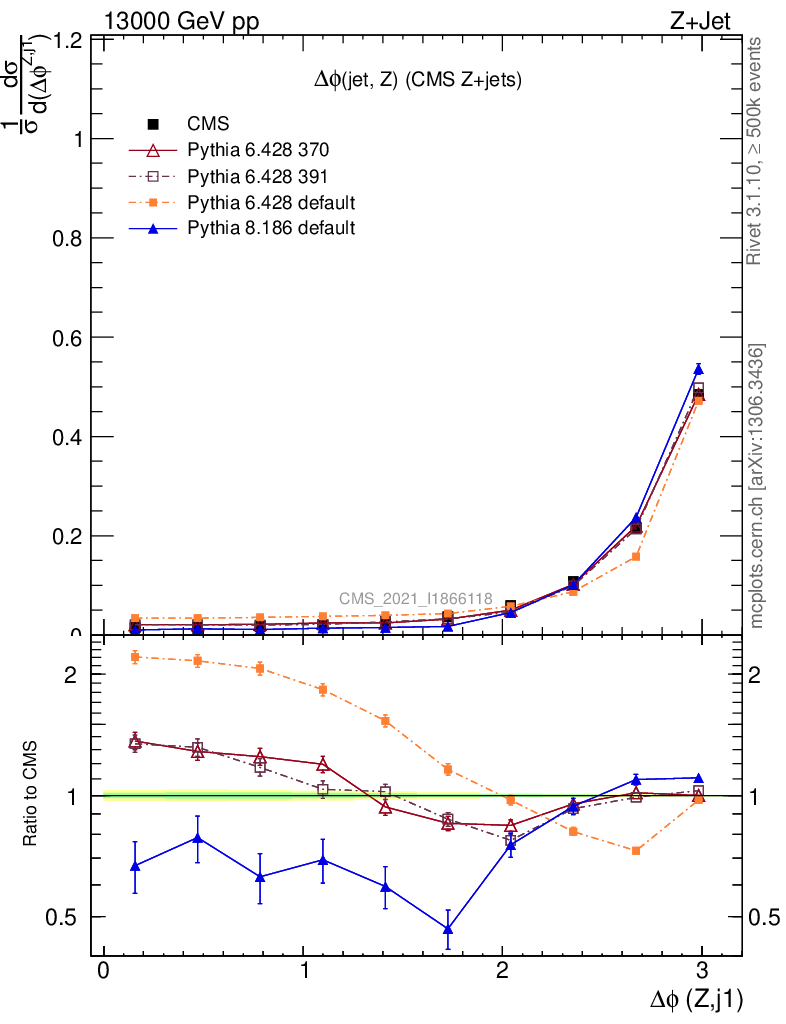Plot of zj.dphi in 13000 GeV pp collisions