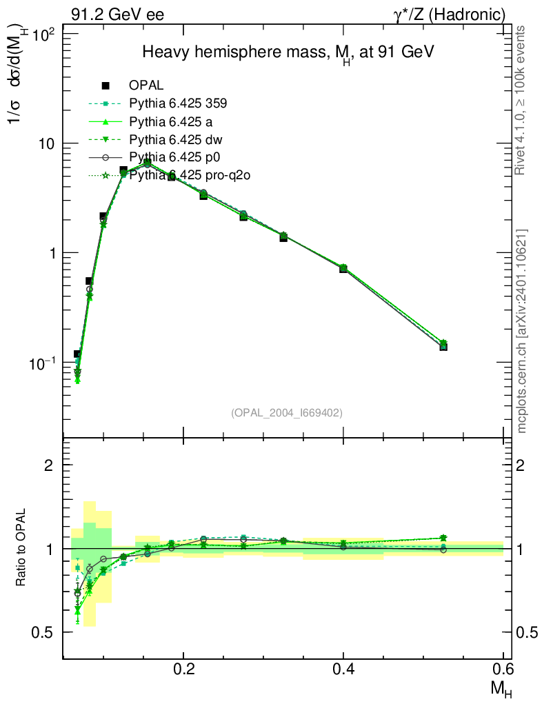 ee : γ*/Z (hadronic) : M(Heavy Hemisph)