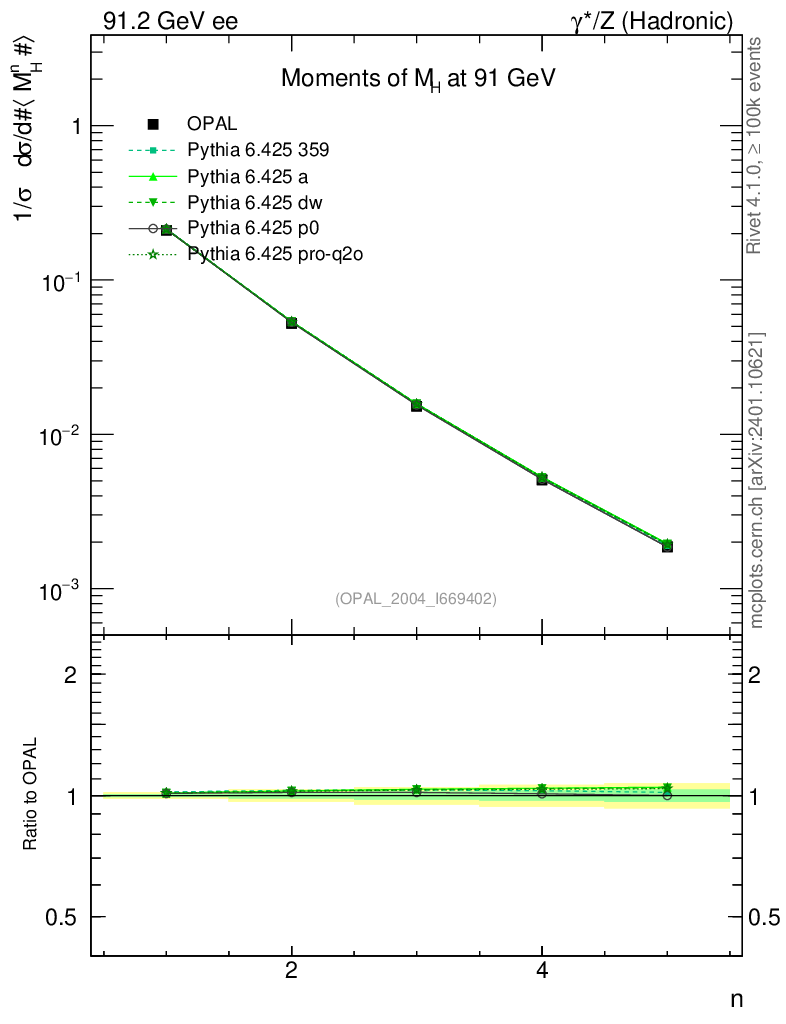 ee : γ*/Z (hadronic) : Event-Shape Moments : Moments of M