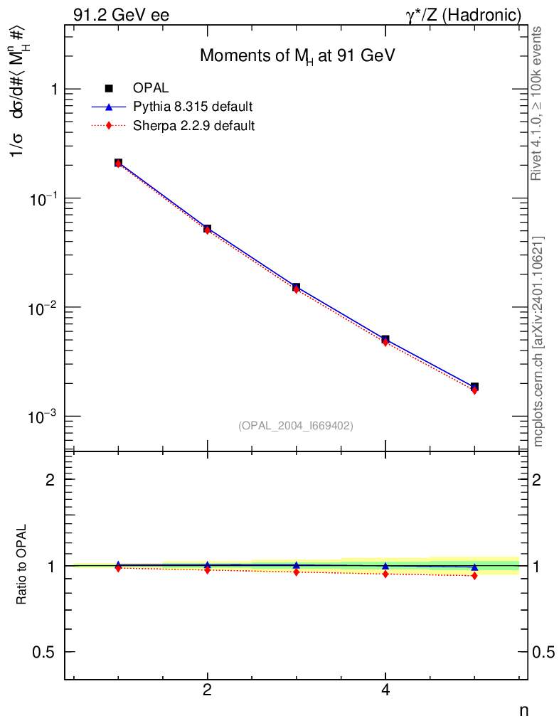 ee : γ*/Z (hadronic) : Event-Shape Moments : Moments of M