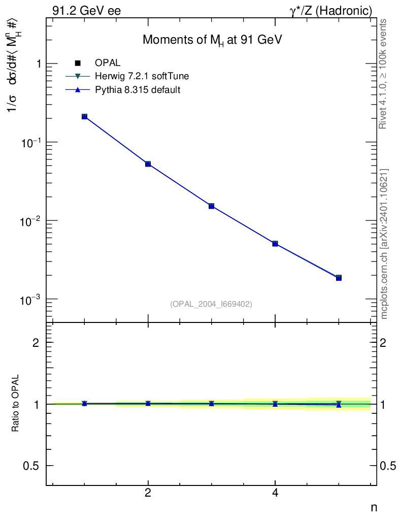 ee : γ*/Z (hadronic) : Event-Shape Moments : Moments of M
