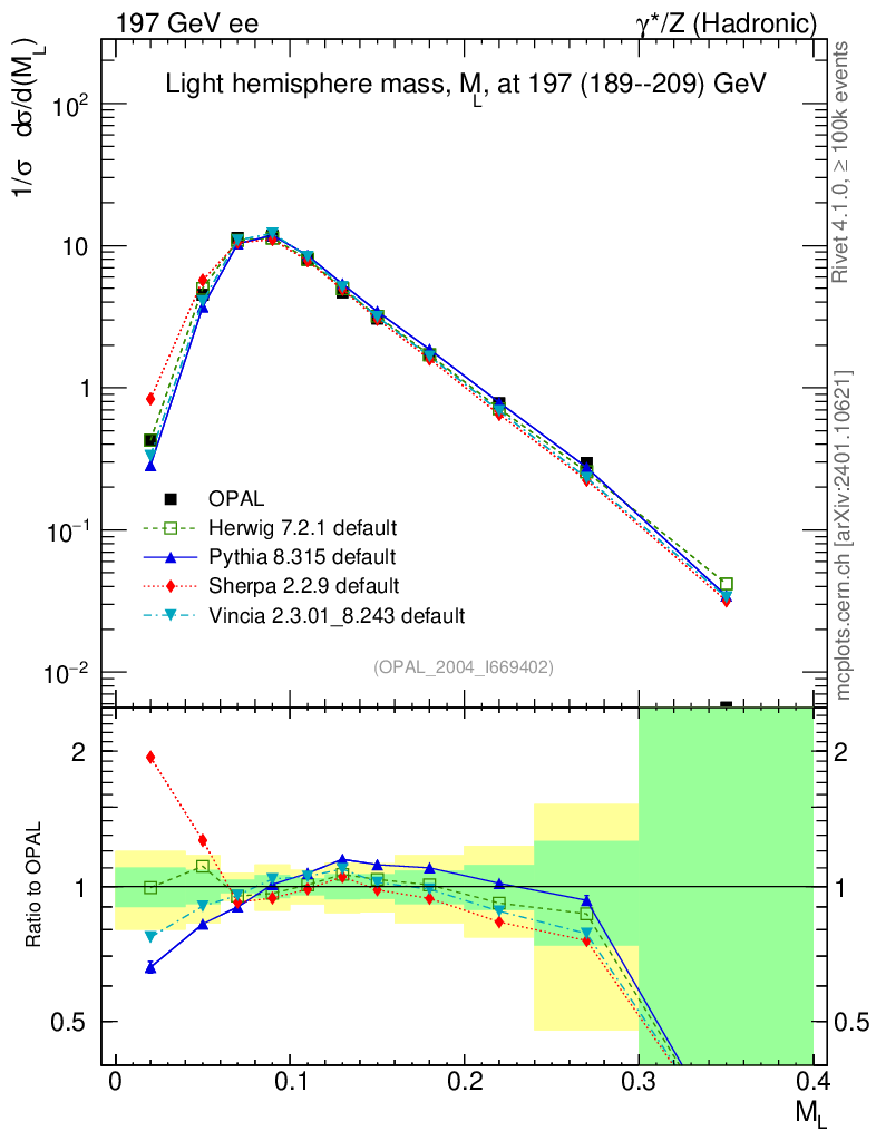 ee : γ*/Z (hadronic) : M(Light Hemisph)