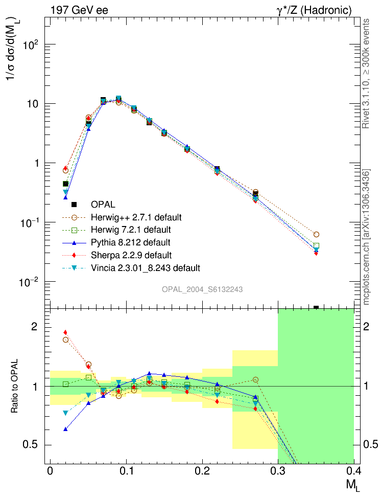 ee : γ*/Z (hadronic) : M(Light Hemisph)