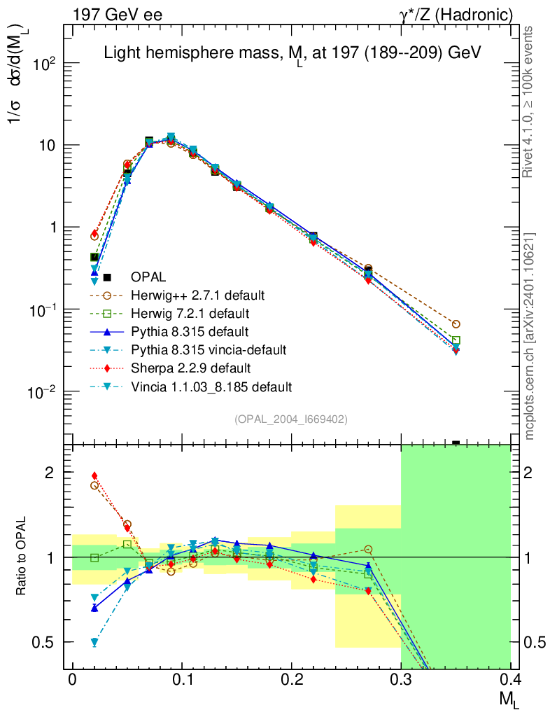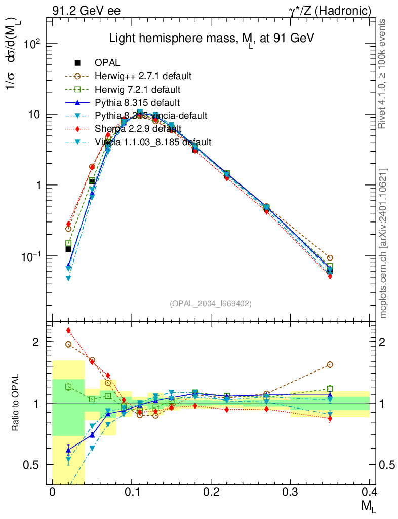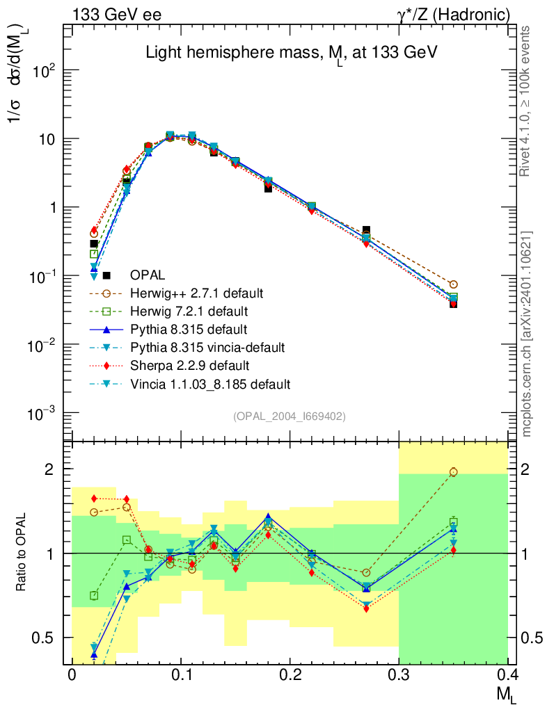 ee : γ*/Z (hadronic) : M(Light Hemisph)