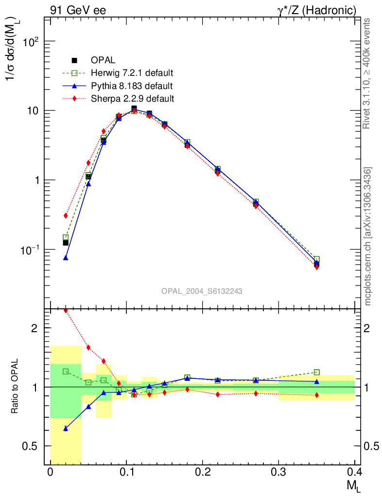 ee : γ*/Z (hadronic) : M(Light Hemisph)