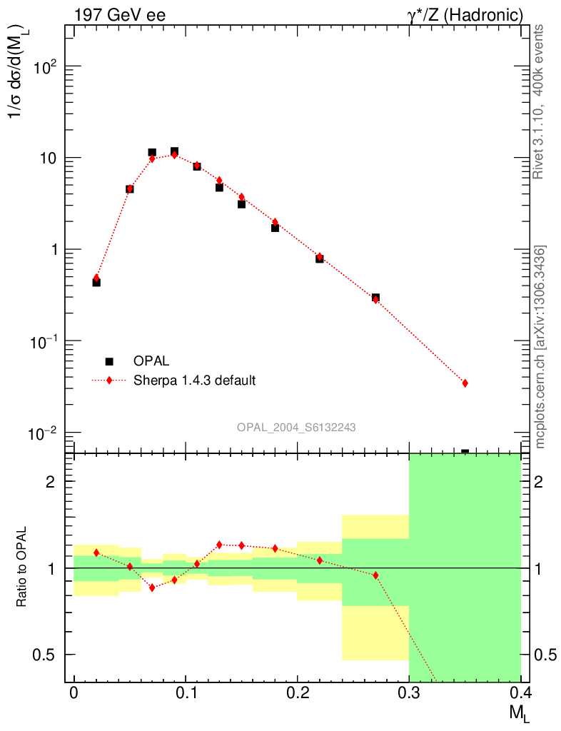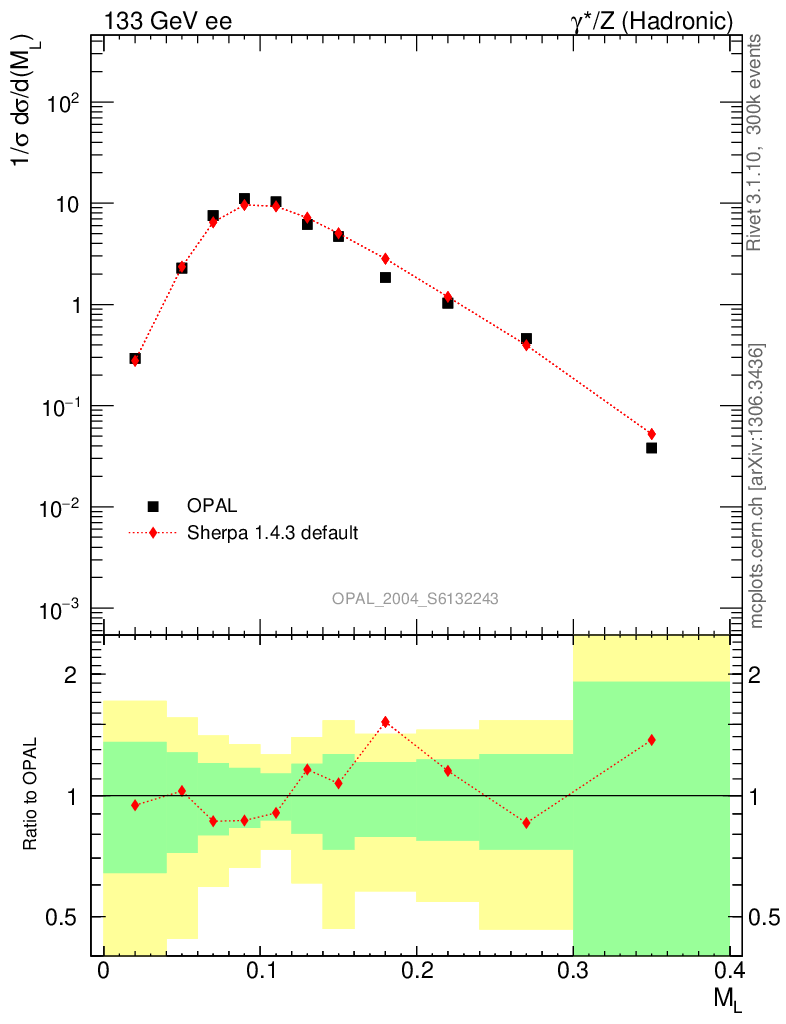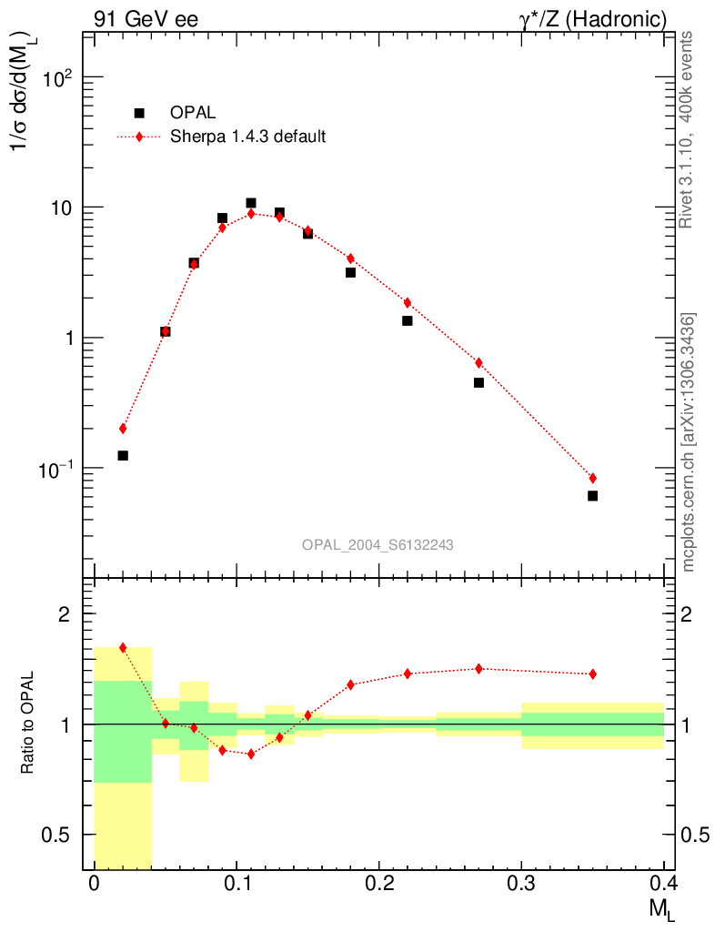 ee : γ*/Z (hadronic) : M(Light Hemisph)