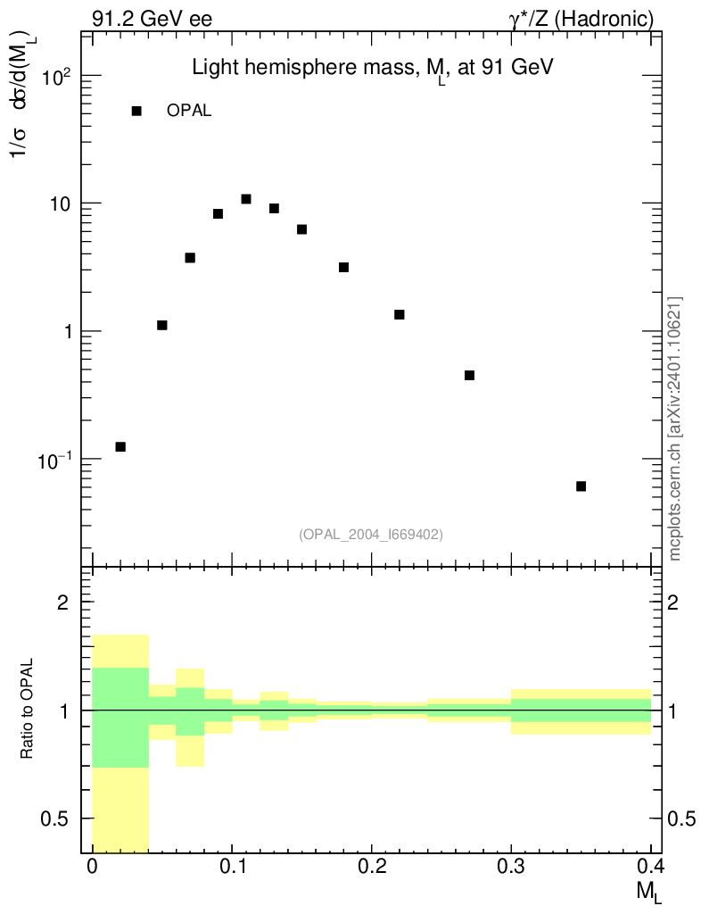 ee : γ*/Z (hadronic) : M(Light Hemisph)