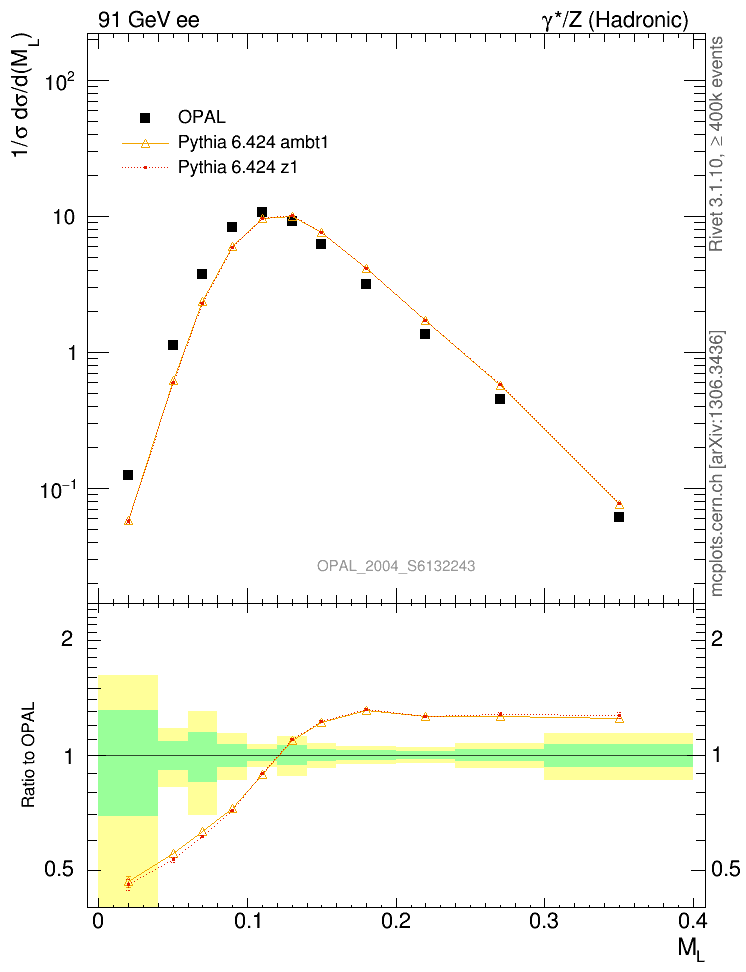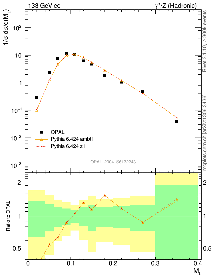 ee : γ*/Z (hadronic) : M(Light Hemisph)