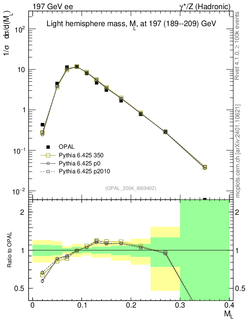 ee : γ*/Z (hadronic) : M(Light Hemisph)