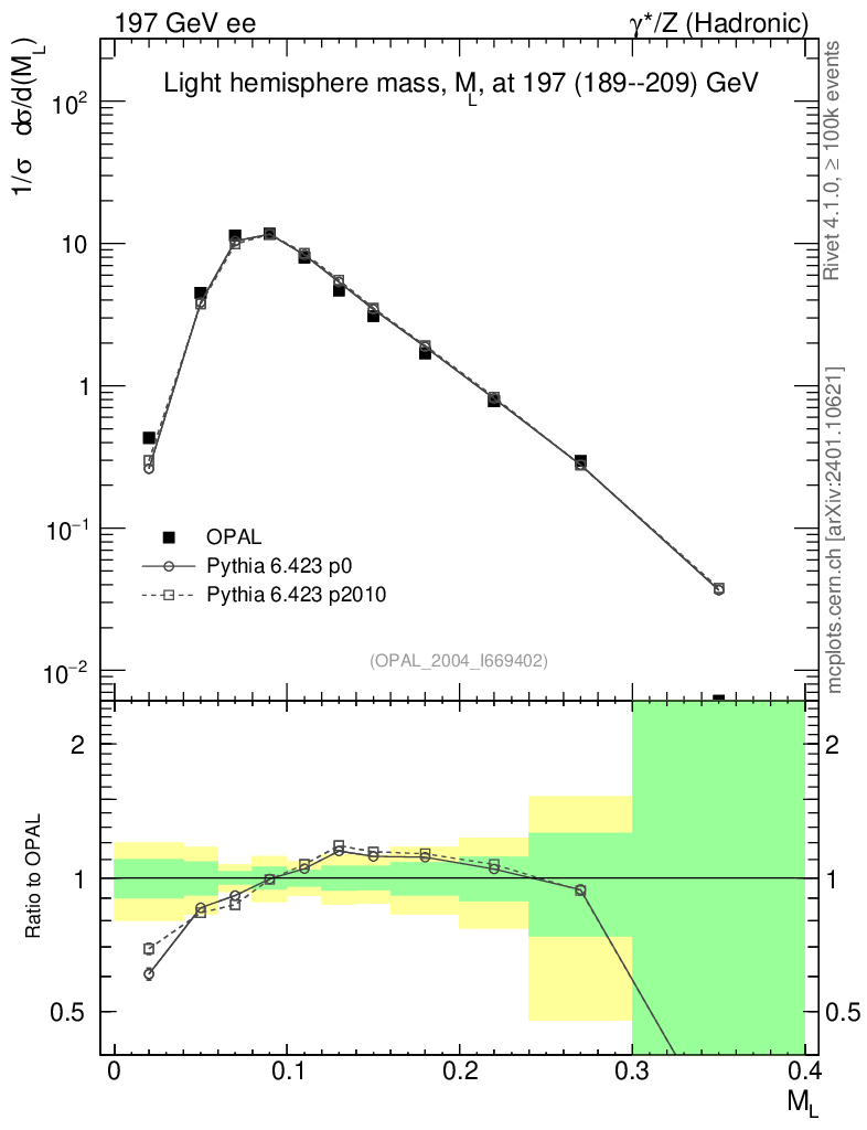 ee : γ*/Z (hadronic) : M(Light Hemisph)