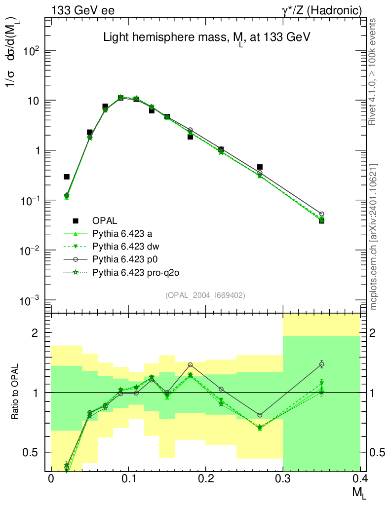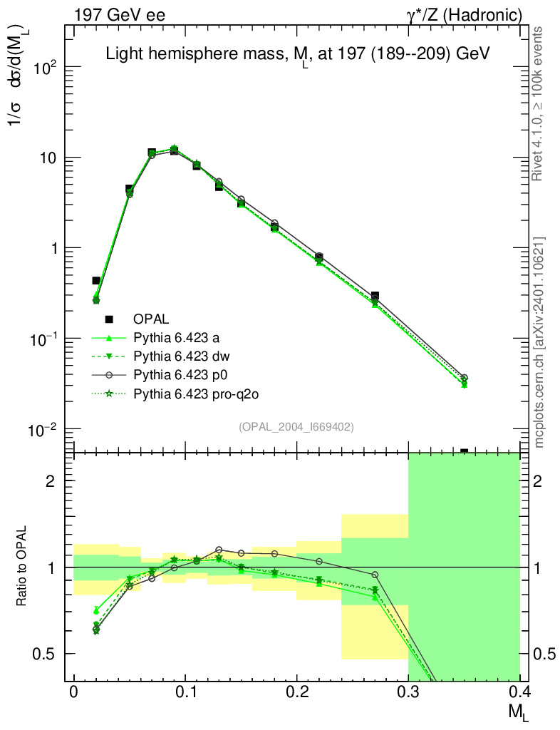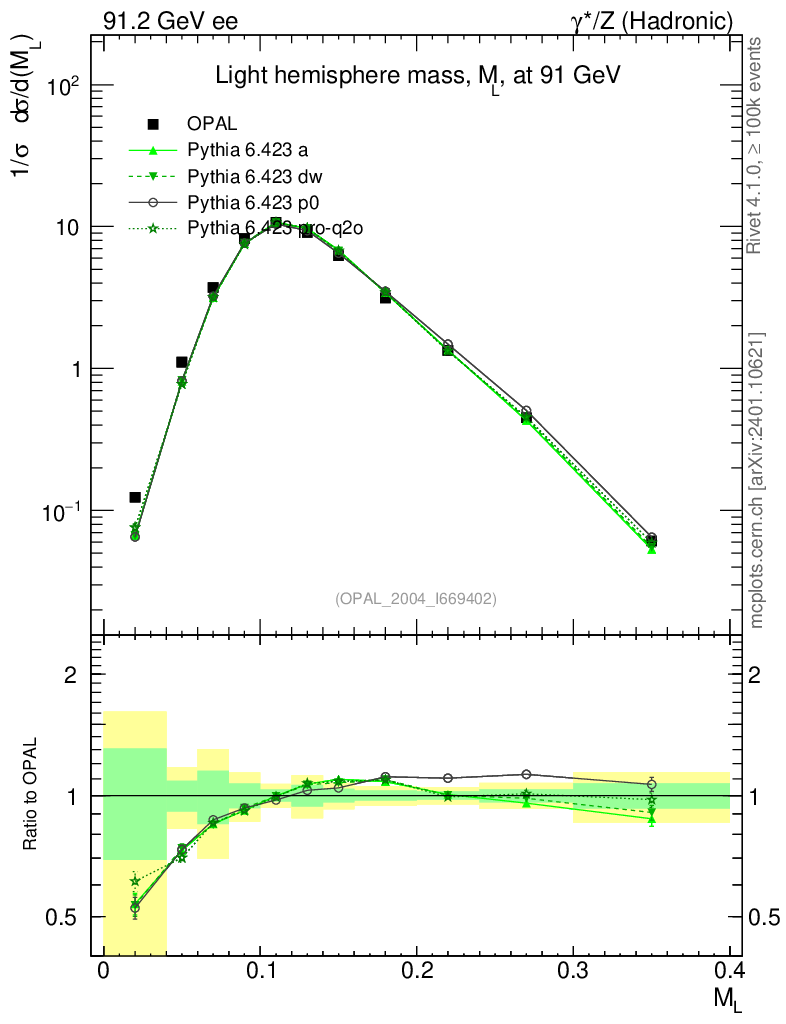 ee : γ*/Z (hadronic) : M(Light Hemisph)