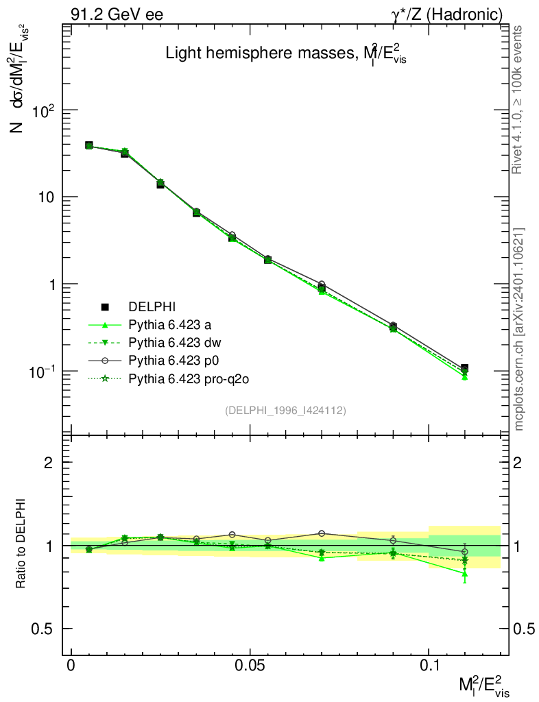 ee : γ*/Z (hadronic) : M(Light Hemisph)