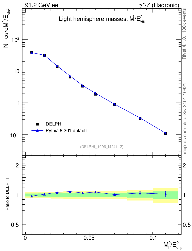 ee : γ*/Z (hadronic) : M(Light Hemisph)
