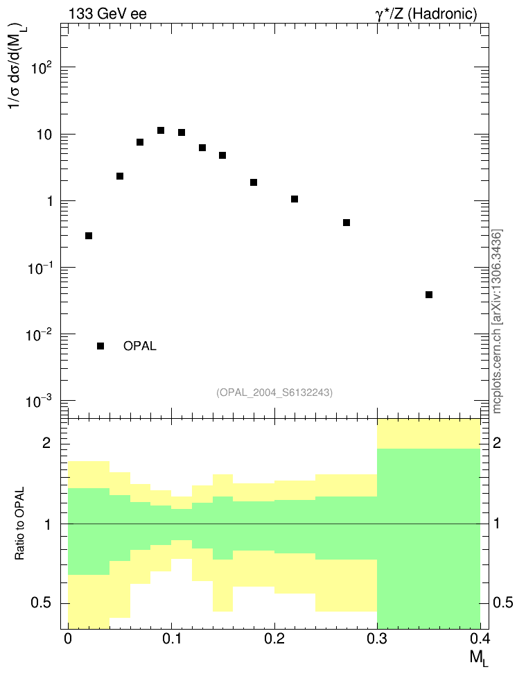 ee : γ*/Z (hadronic) : M(Light Hemisph)