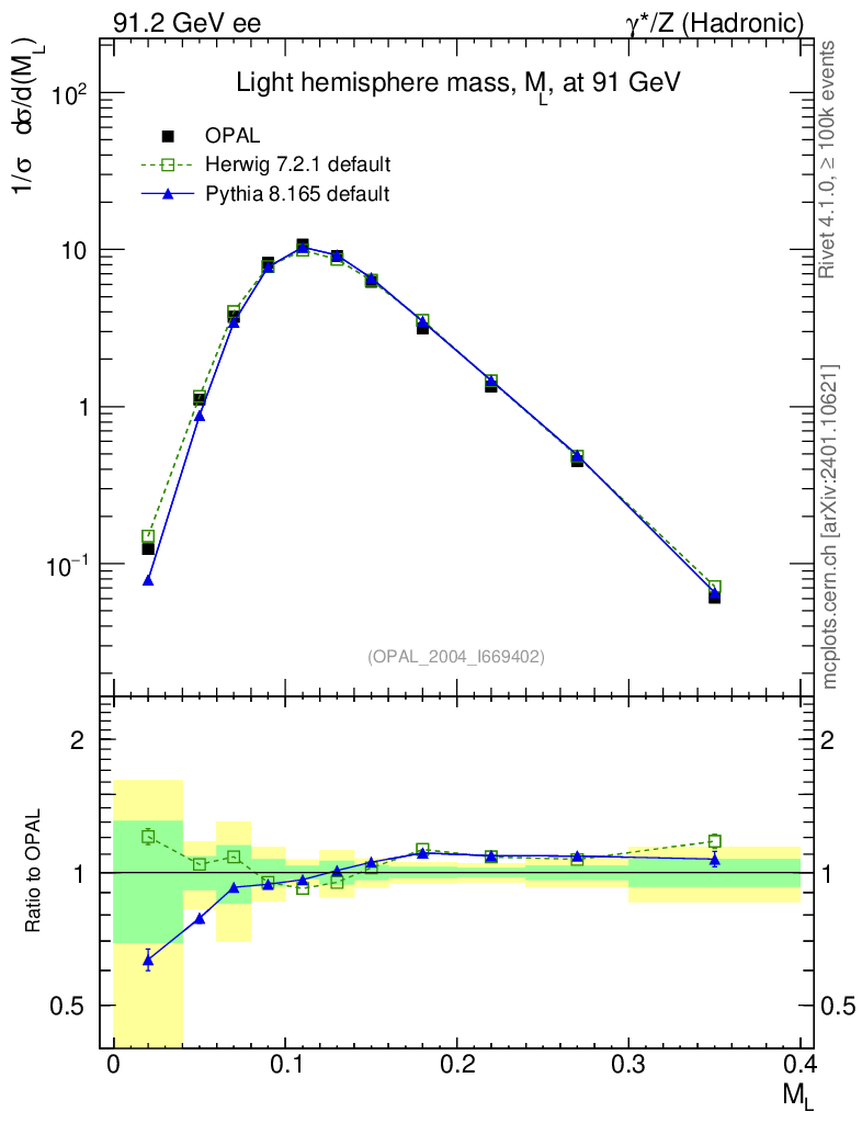 ee : γ*/Z (hadronic) : M(Light Hemisph)