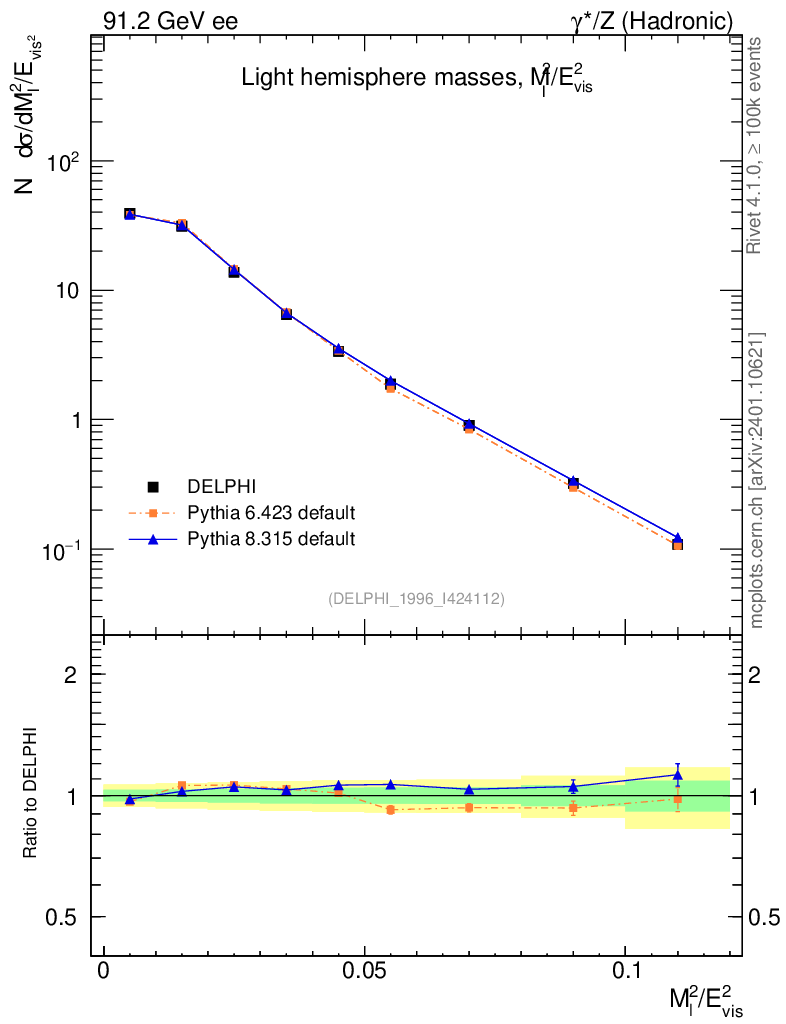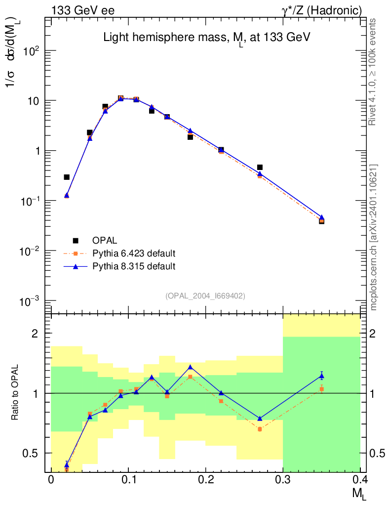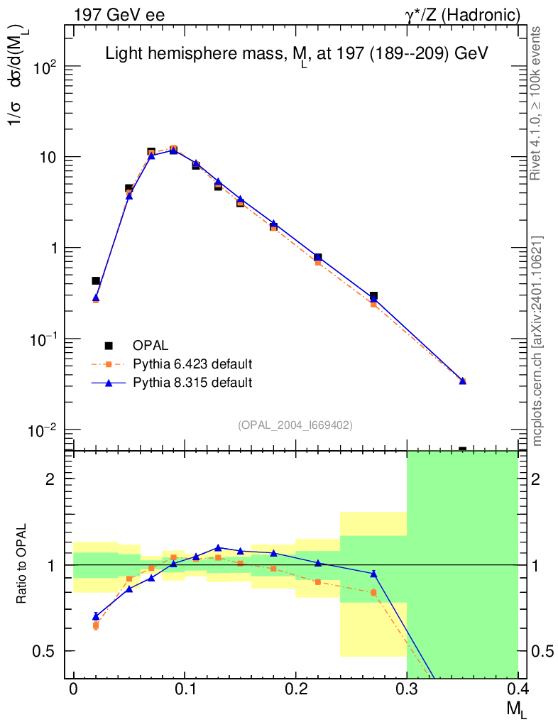 ee : γ*/Z (hadronic) : M(Light Hemisph)