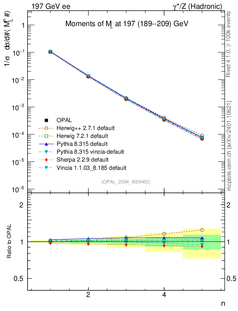 ee : γ*/Z (hadronic) : Event-Shape Moments : Moments of M