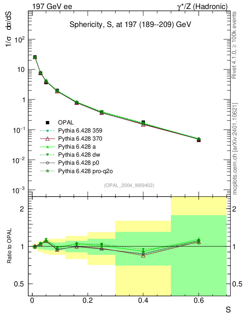 ee : γ*/Z (hadronic) : Sphericity
