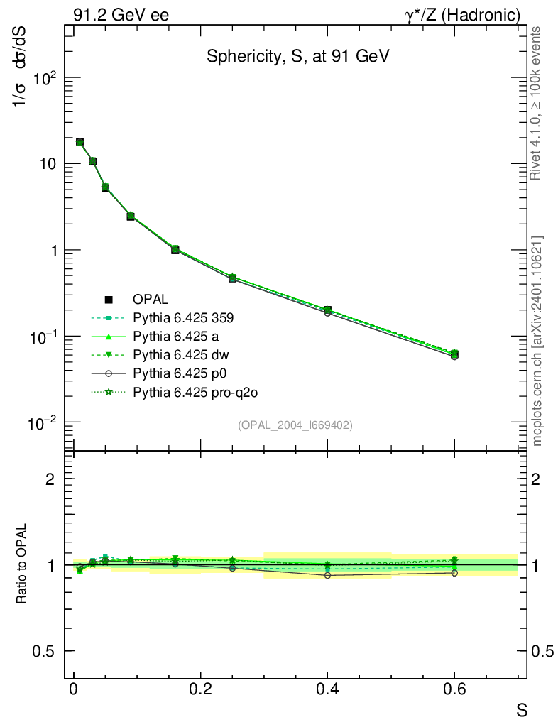 ee : γ*/Z (hadronic) : Sphericity