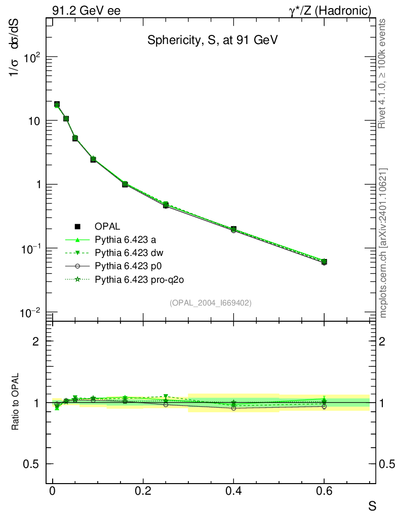 ee : γ*/Z (hadronic) : Sphericity