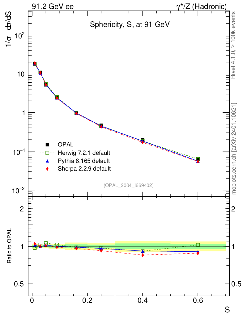 ee : γ*/Z (hadronic) : Sphericity