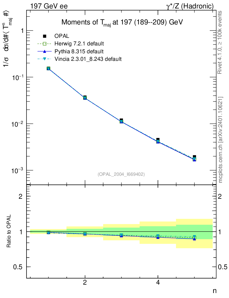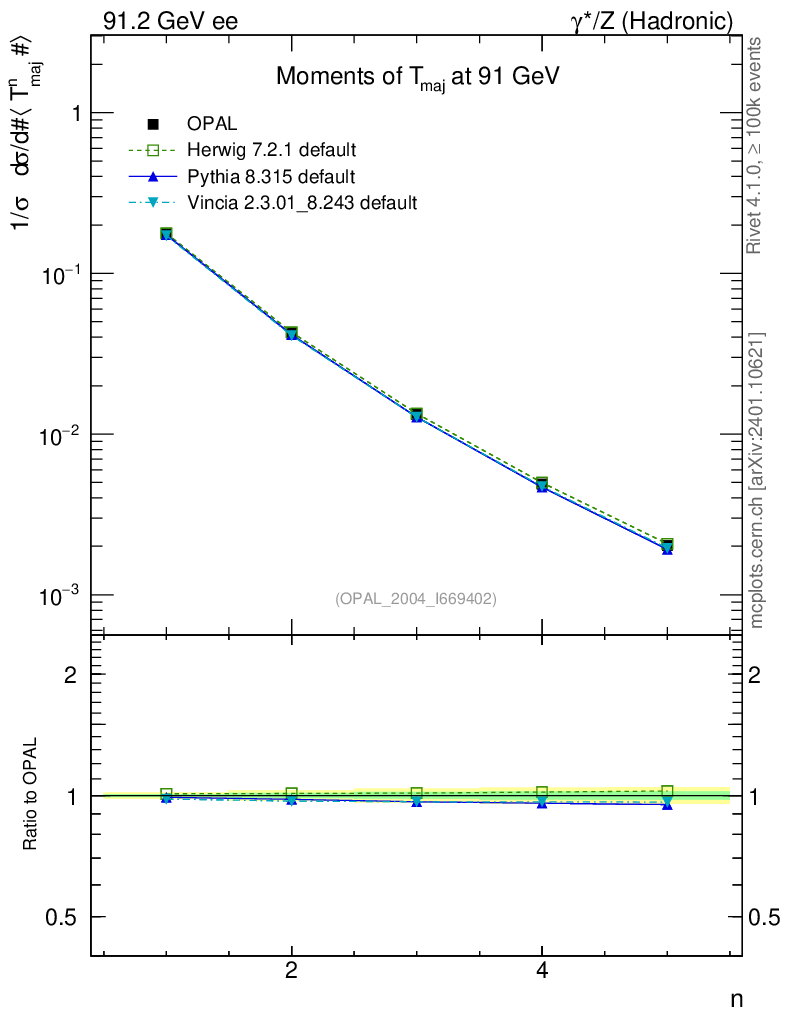 ee : γ*/Z (hadronic) : Event-Shape Moments : Moments of T Major